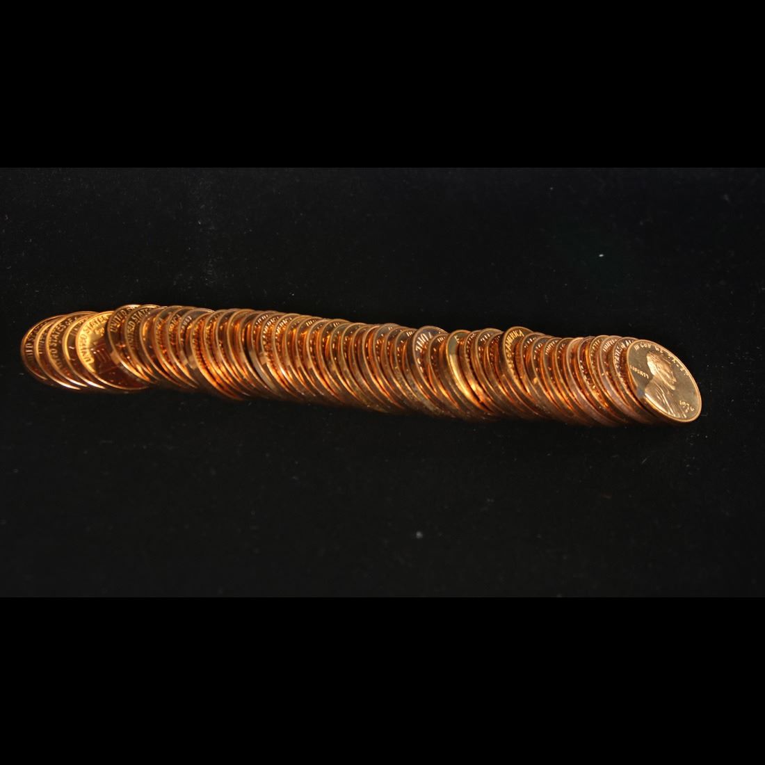 Proof 1976-s Lincoln cent 1c roll, 50 pieces (fc). A terrific proof roll of Lincoln cents. All red, and deep cameo. Trends pr65rd dcam is $10/coin, $500