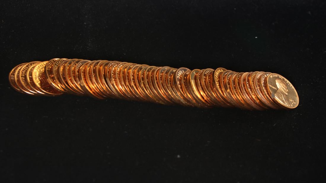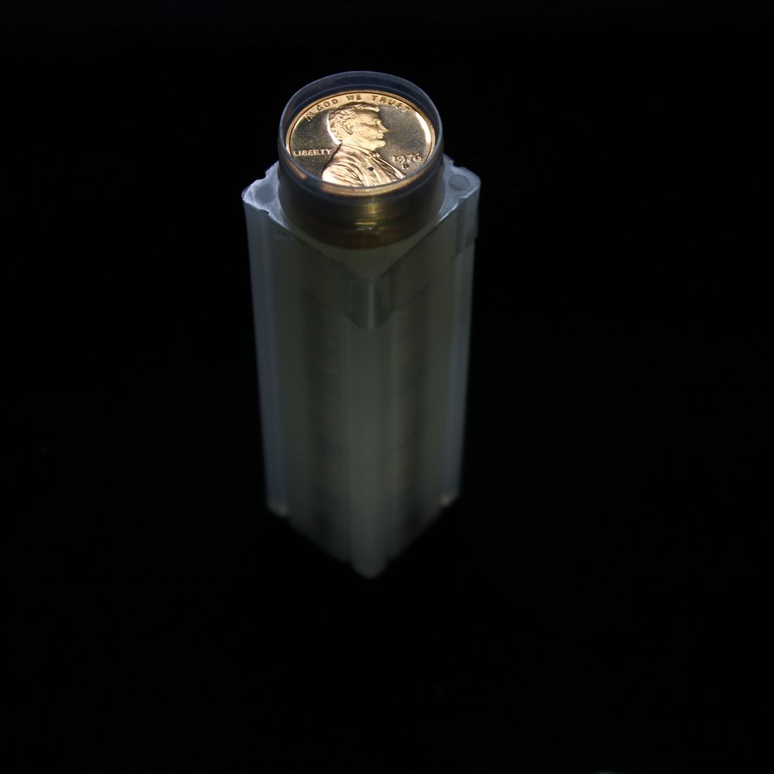 Proof 1976-s Lincoln cent 1c roll, 50 pieces. A terrific proof roll of Lincoln cents. All red, many cameo and deep cameo. Trends pr65rd cam is $4.50/coin, $225