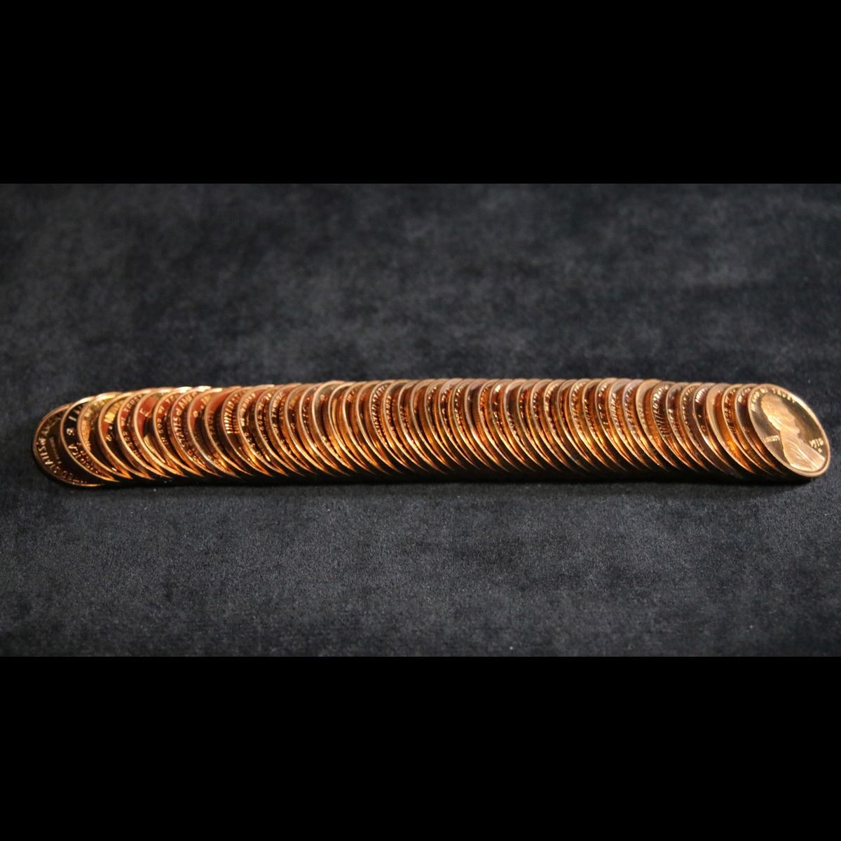 Proof 1974-s Lincoln cent 1c roll, 50 pieces (fc) . .. A terrific proof roll of Lincoln cents. All red, and deep cameo. Trends pr68rd dcam is $23/coin, pr69DCAM is $65 a coin