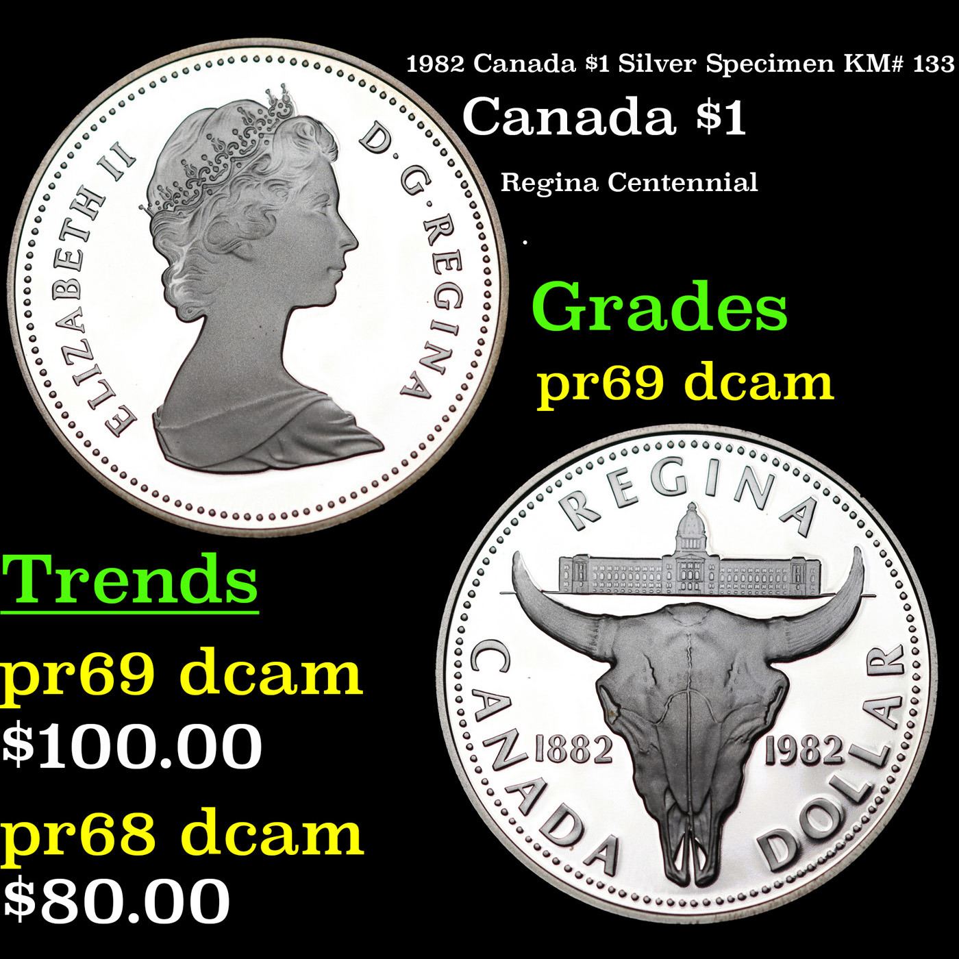 Proof 1982 Canada $1 Silver Specimen Canada Dollar KM# 133 $1 Grades GEM++ Proof Deep Cameo