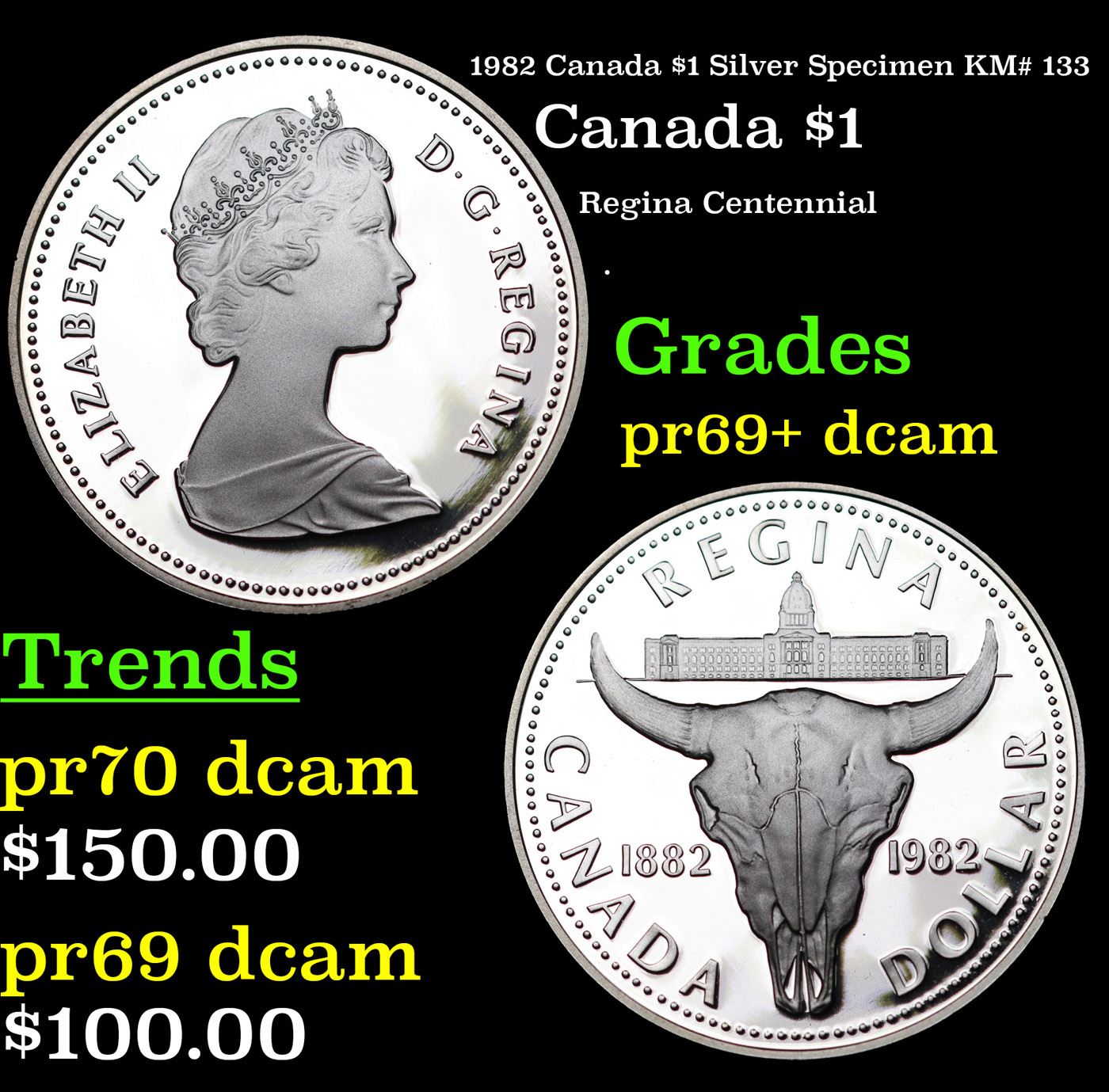 Proof 1982 Canada $1 Silver Specimen Canada Dollar KM# 133 $1 Grades GEM++ Proof Deep Cameo