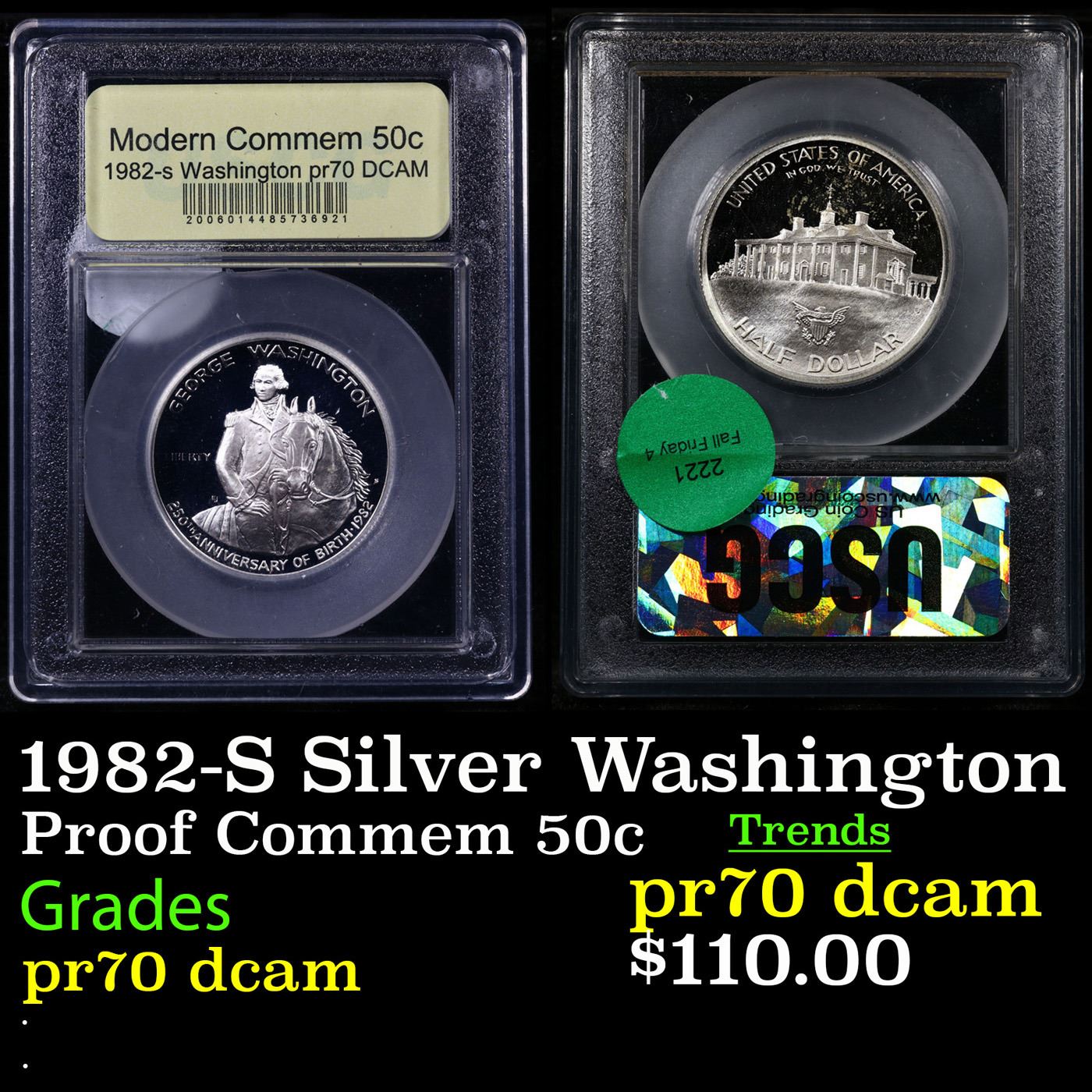 Proof 1982-S Washington Modern Commem Half Dollar 50c Graded GEM++ Proof Deep Cameo BY USCG