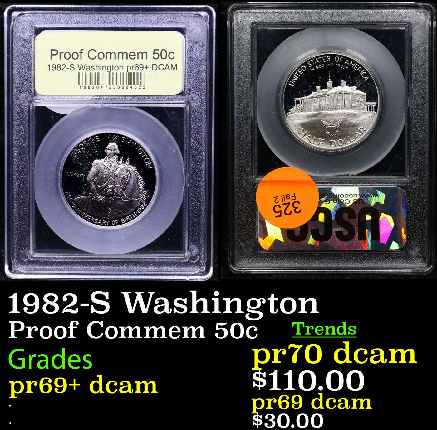 Proof 1982-S Washington Modern Commem Half Dollar 50c Graded GEM++ Proof Deep Cameo By USCG