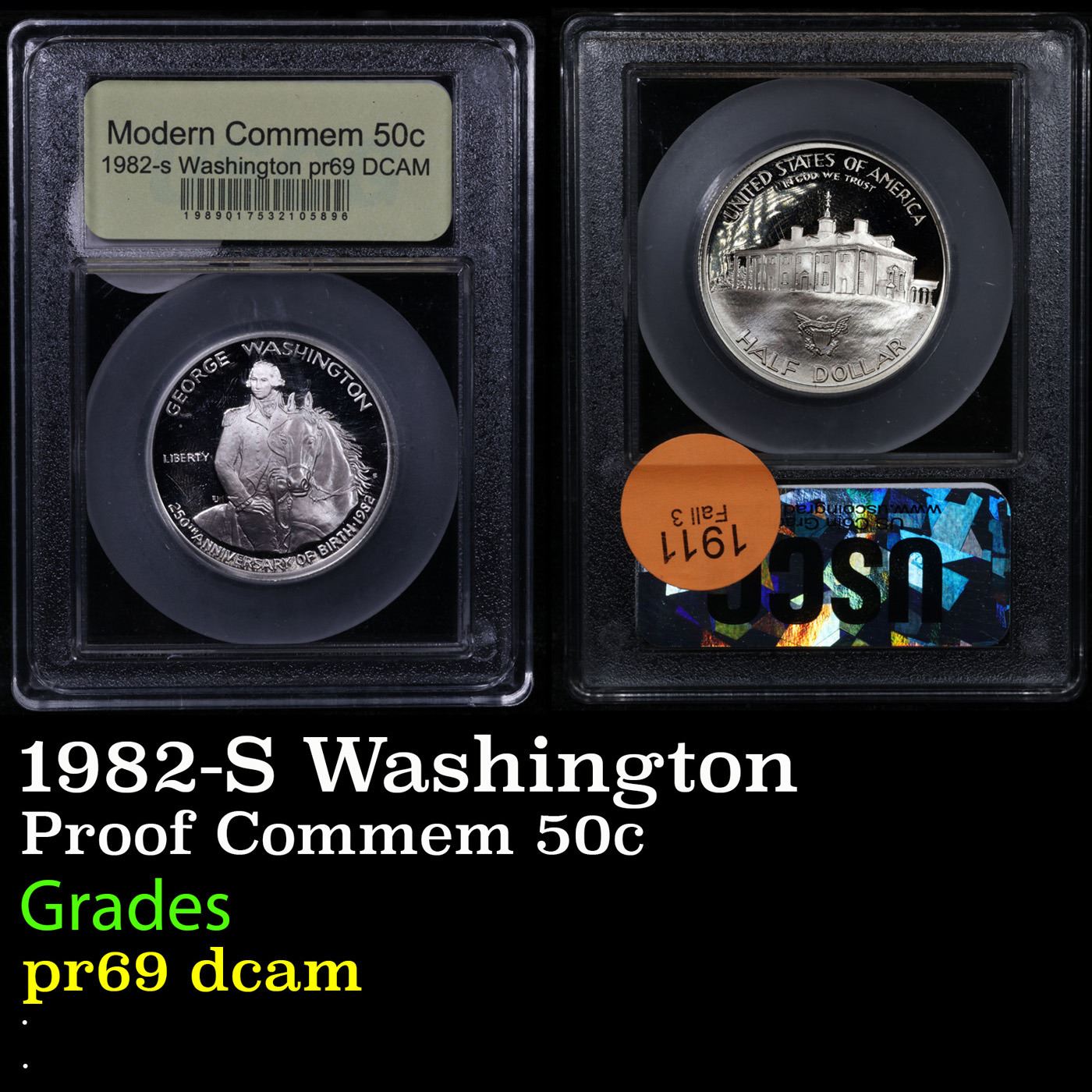 Proof 1982-S Washington Modern Commem Half Dollar 50c Graded GEM++ Proof Deep Cameo By USCG