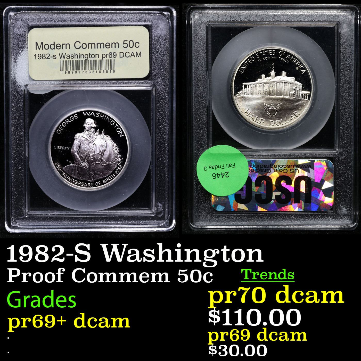 Proof 1982-S Washington Modern Commem Half Dollar 50c Graded GEM++ Proof Deep Cameo By USCG