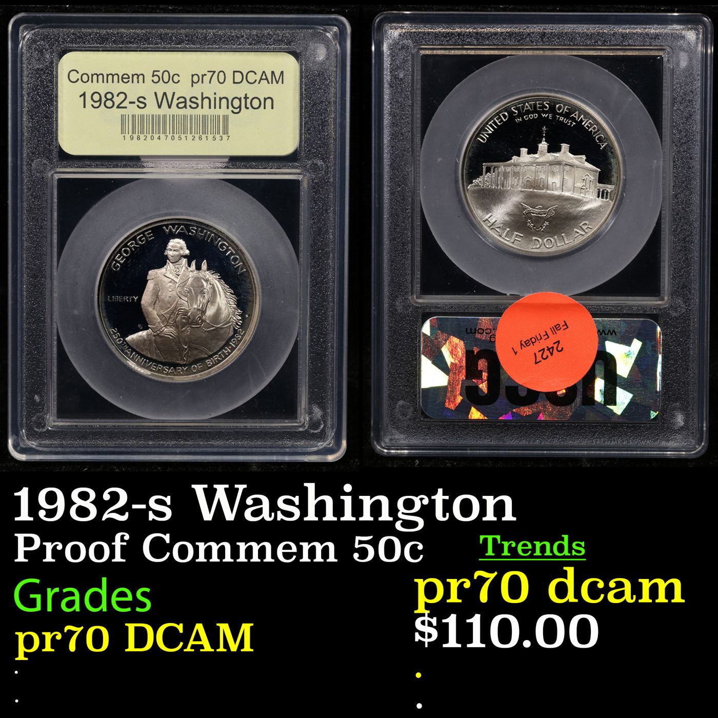 Proof 1982-s Washington Modern Commem Half Dollar 50c Graded GEM++ Proof Deep Cameo By USCG