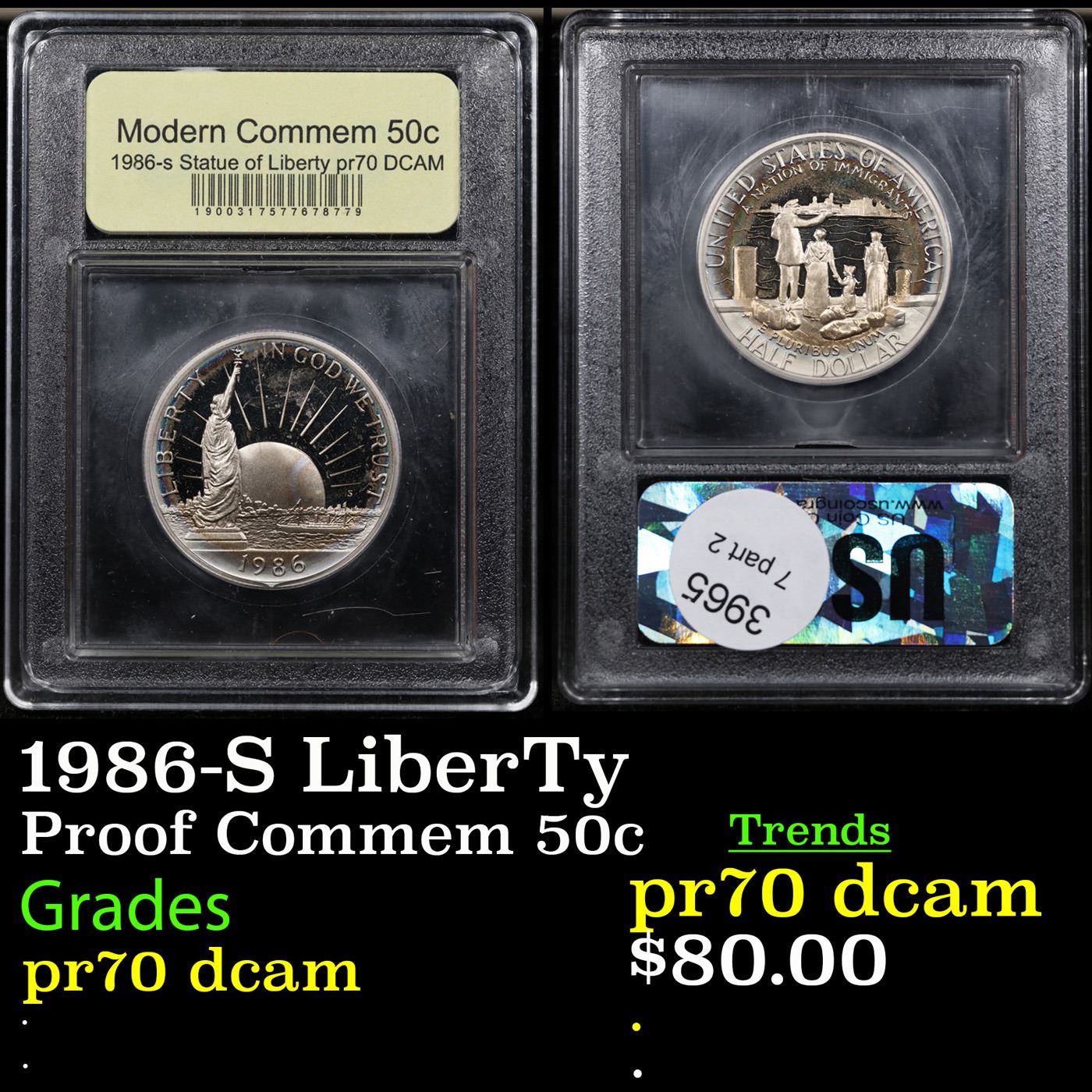 Proof 1986-S LiberTy Modern Commem Half Dollar 50c Graded GEM++ Proof Deep Cameo BY USCG
