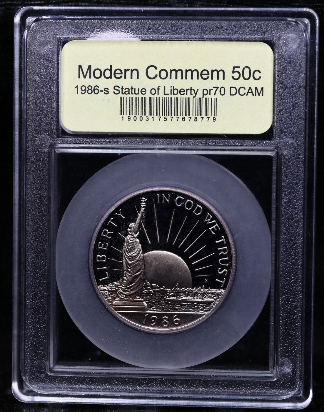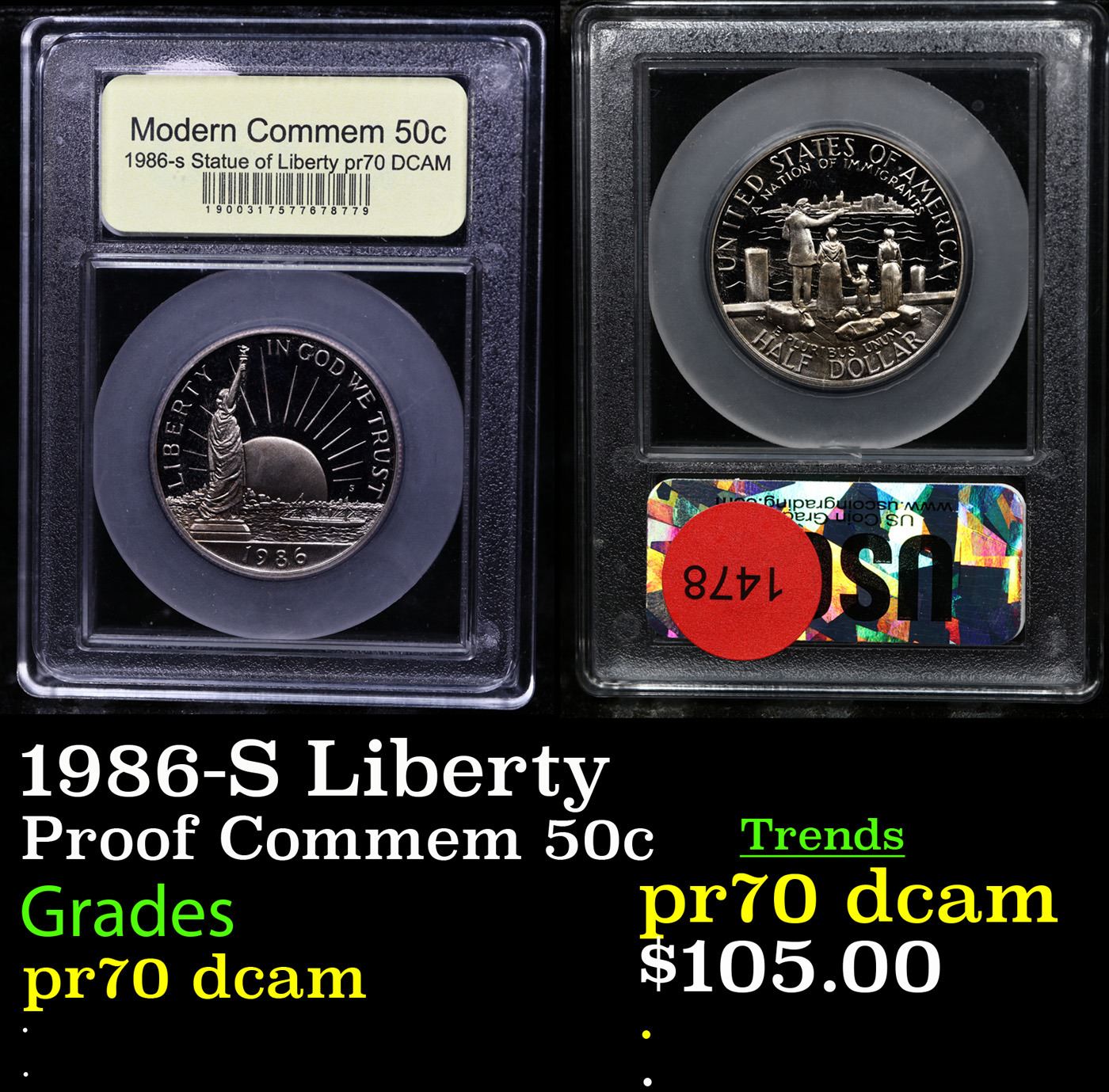 1986-S Liberty Modern Commem Half Dollar 50c Graded GEM++ Proof Deep Cameo By USCG. This is the Statue of Liberty commemorative which pays homage to Ellis Island. This example is Graded PR70 DCAM by USCG. .