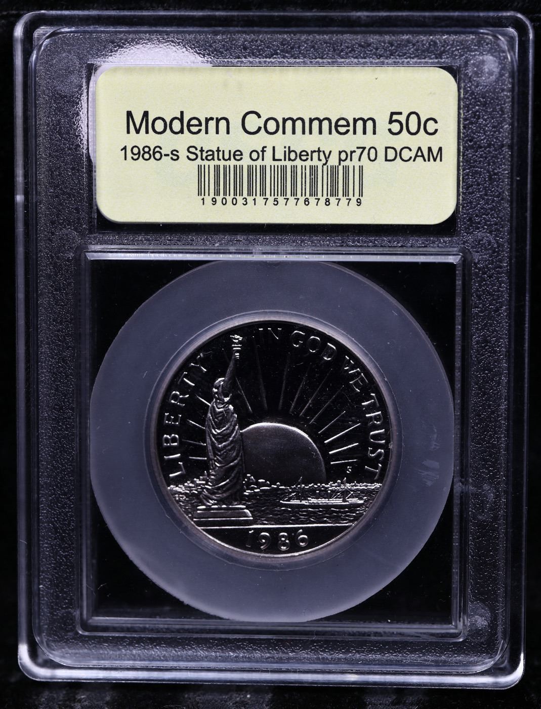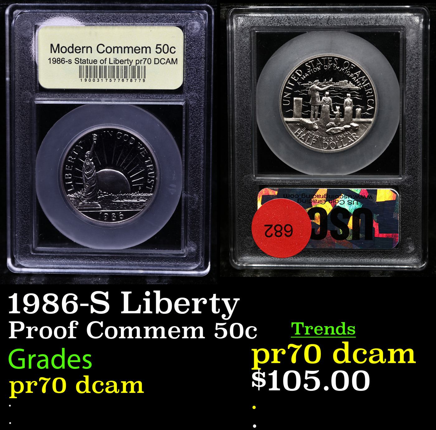 1986-S Liberty Modern Commem Half Dollar 50c Graded GEM++ Proof Deep Cameo By USCG. This is the Statue of Liberty commemorative which pays homage to Ellis Island. This example is Graded PR70 DCAM by USCG. .