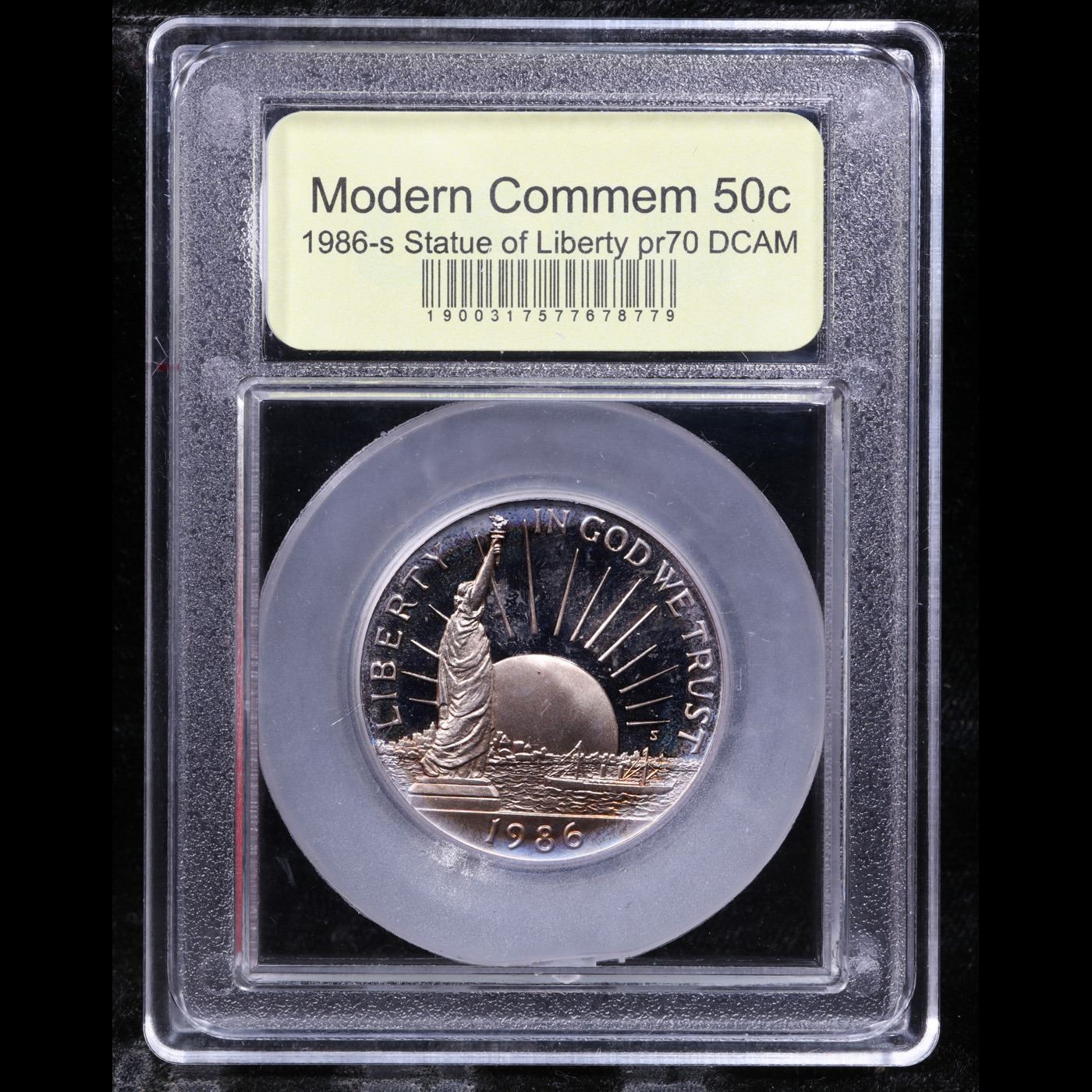1986-S Liberty Modern Commem Half Dollar 50c Graded GEM++ Proof Deep Cameo By USCG. The 1986 Statue of Liberty Commemorative Dollar was one of three commemorative coins issued to celebrate the 100th anniversary of the dedication of the Statue of Liberty. This coin is graded perfection ms70 by USCG.