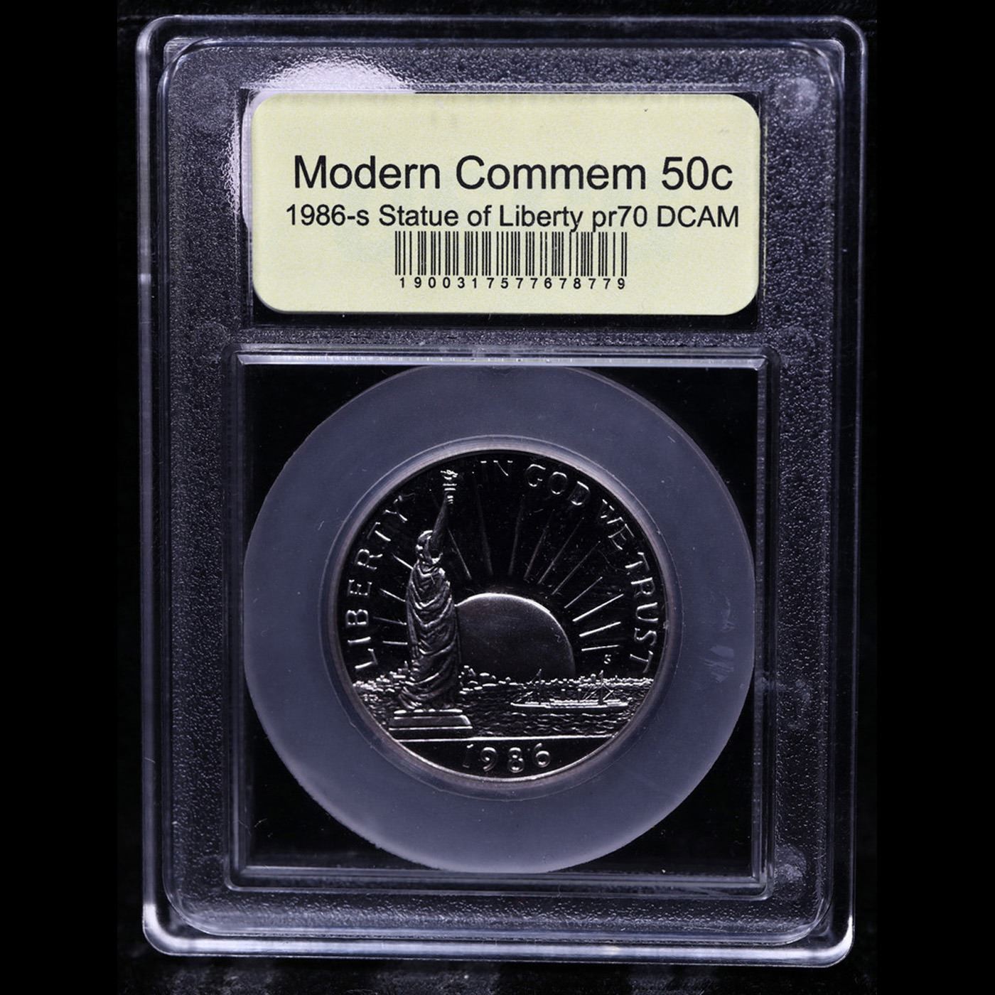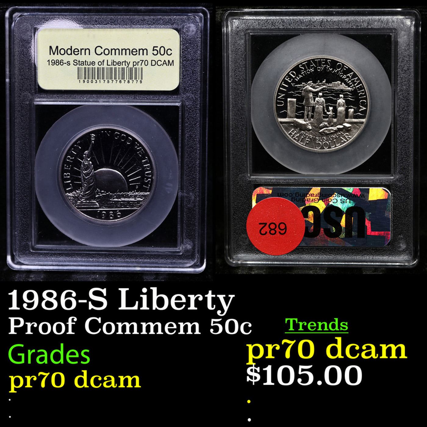 . 1986-S Liberty Modern Commem Half Dollar 50c Graded GEM++ Proof Deep Cameo By USCG. This is the Statue of Liberty commemorative which pays homage to Ellis Island. This example is Graded PR70 DCAM by USCG.
