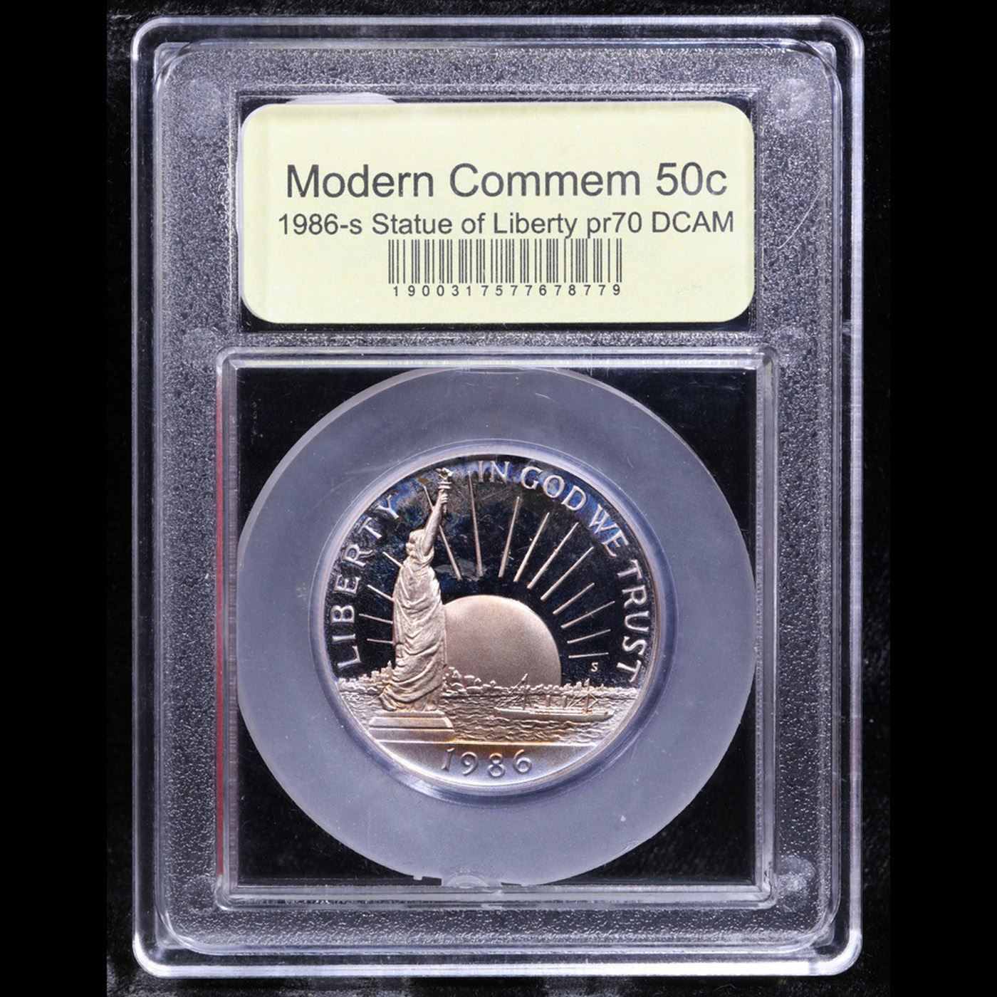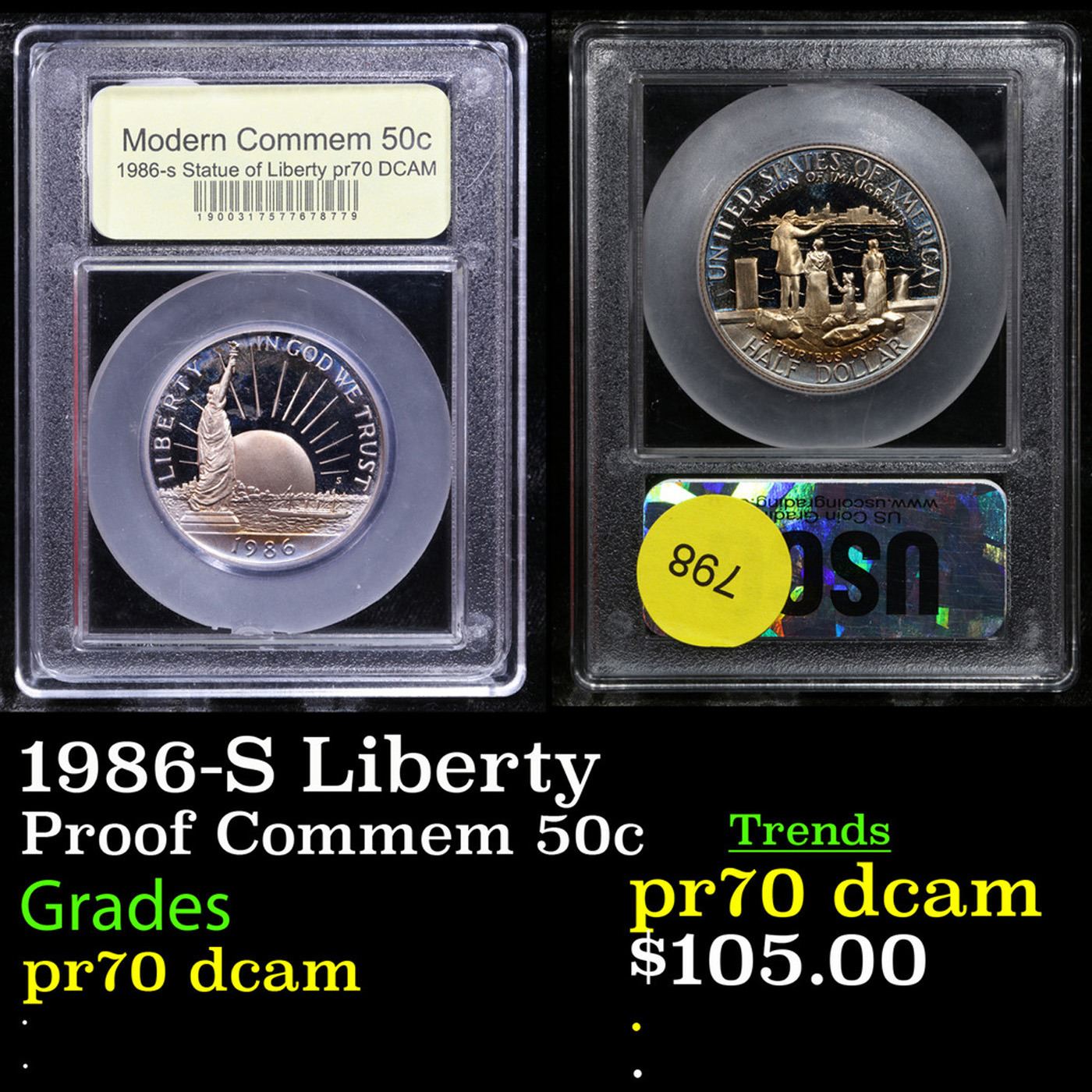 . 1986-S Liberty Modern Commem Half Dollar 50c Graded GEM++ Proof Deep Cameo By USCG. This is the Statue of Liberty commemorative which pays homage to Ellis Island. This example is Graded PR70 DCAM by USCG.