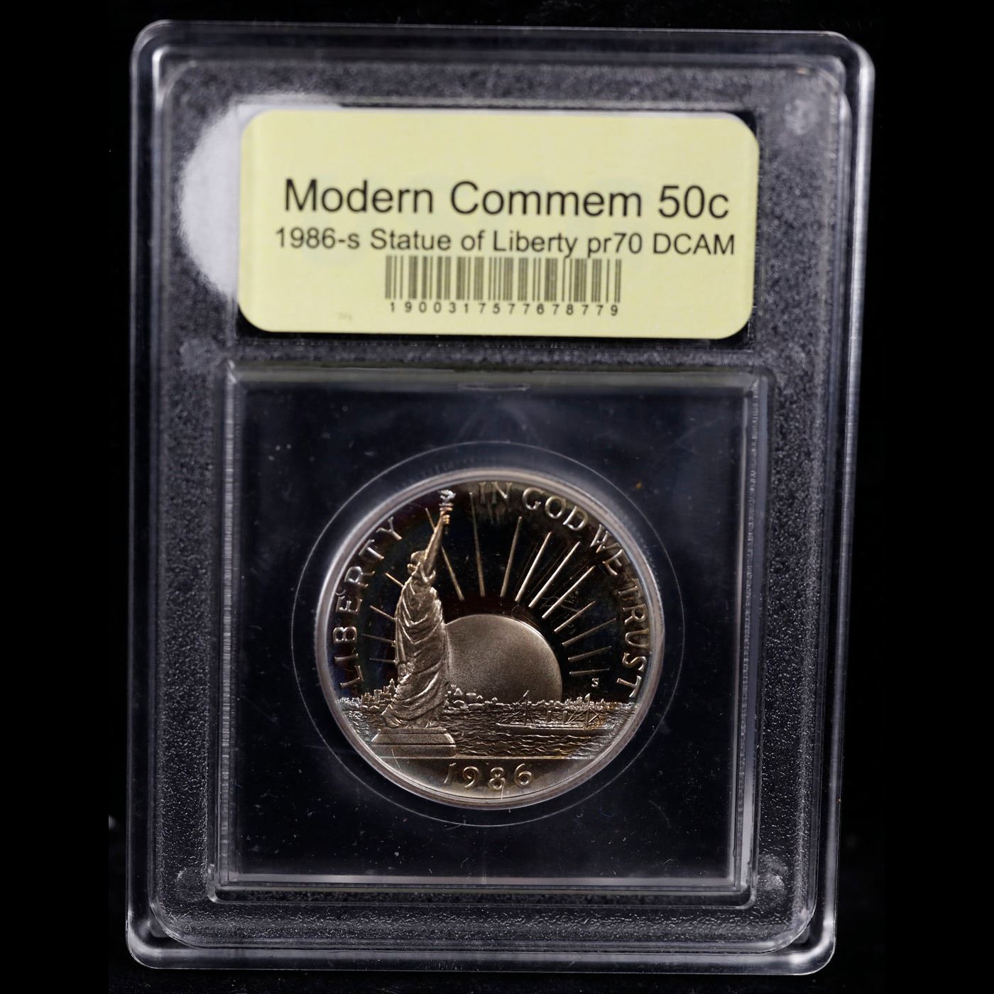 1986-S Liberty Modern Commem Half Dollar 50c Graded GEM++ Proof Deep Cameo By USCG. This Statue of Liberty commemorative pays homage to Ellis Island. This example is Graded PR70 DCAM by USCG.