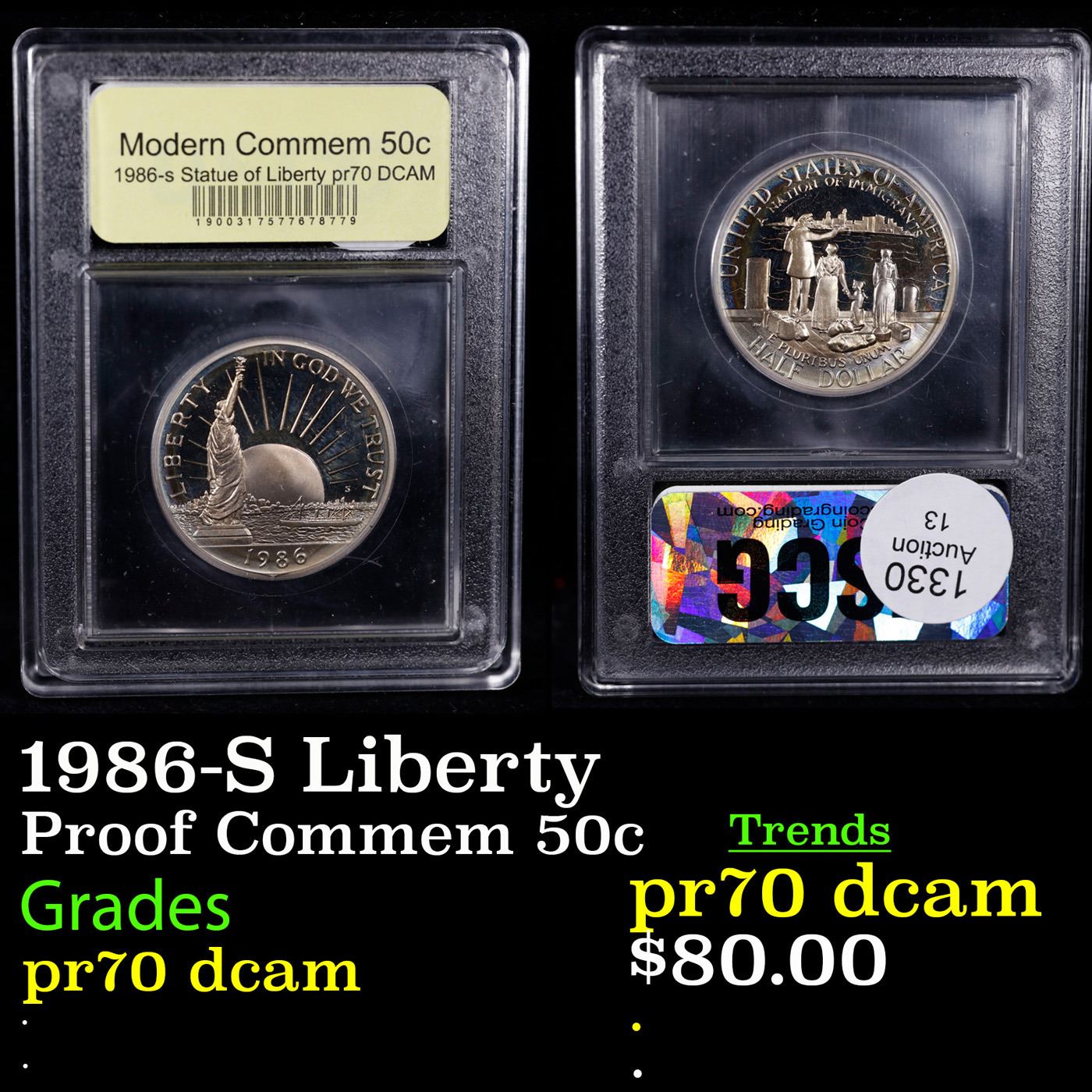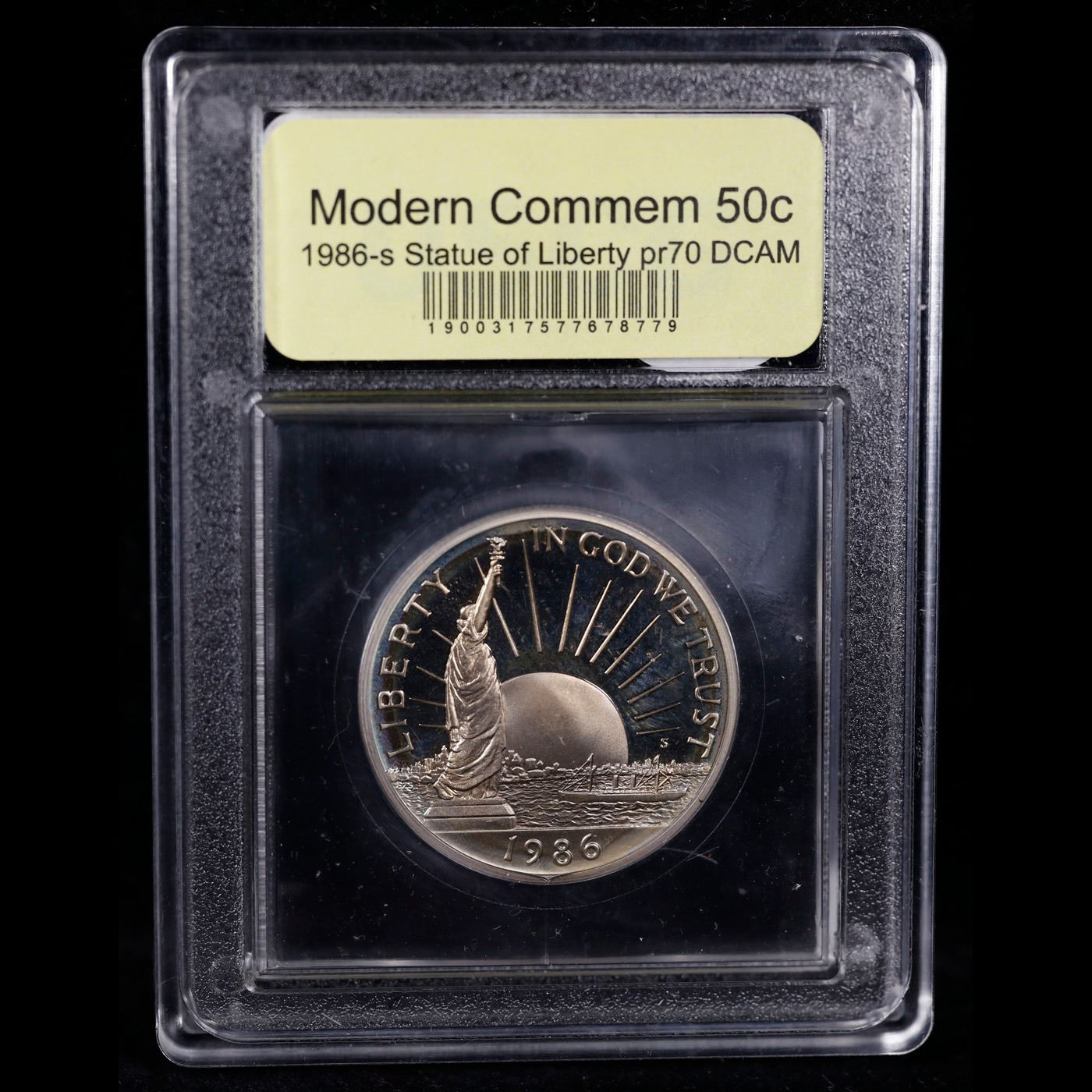 1986-S Liberty Modern Commem Half Dollar 50c Graded GEM++ Proof Deep Cameo By USCG. This Statue of Liberty commemorative pays homage to Ellis Island. This example is Graded PR70 DCAM by USCG.