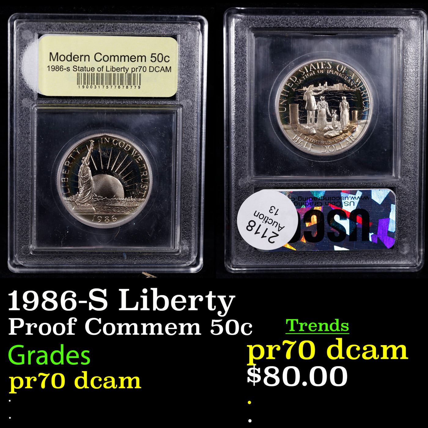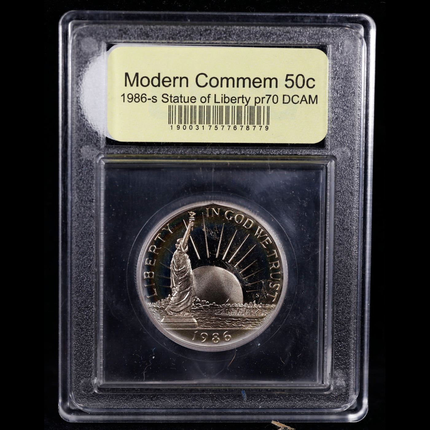 1986-S Liberty Modern Commem Half Dollar 50c Graded GEM++ Proof Deep Cameo By USCG. This Statue of Liberty commemorative pays homage to Ellis Island. This example is Graded PR70 DCAM by USCG.