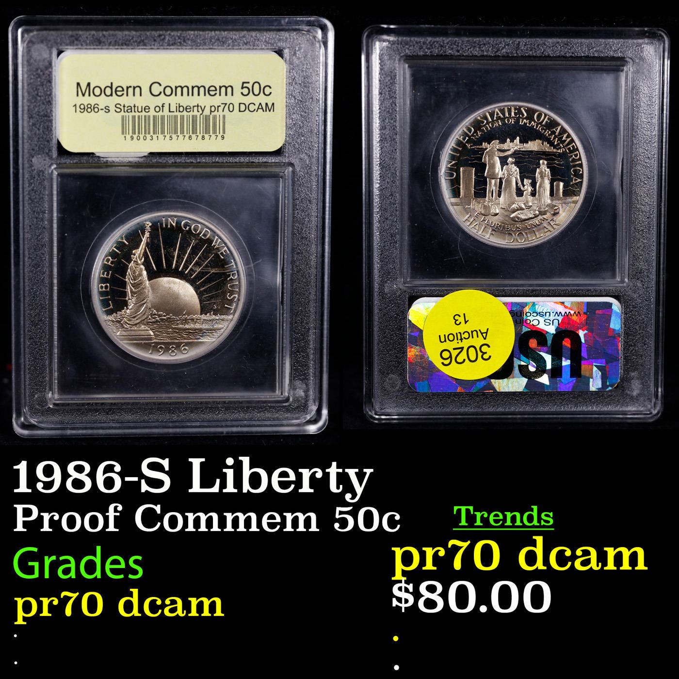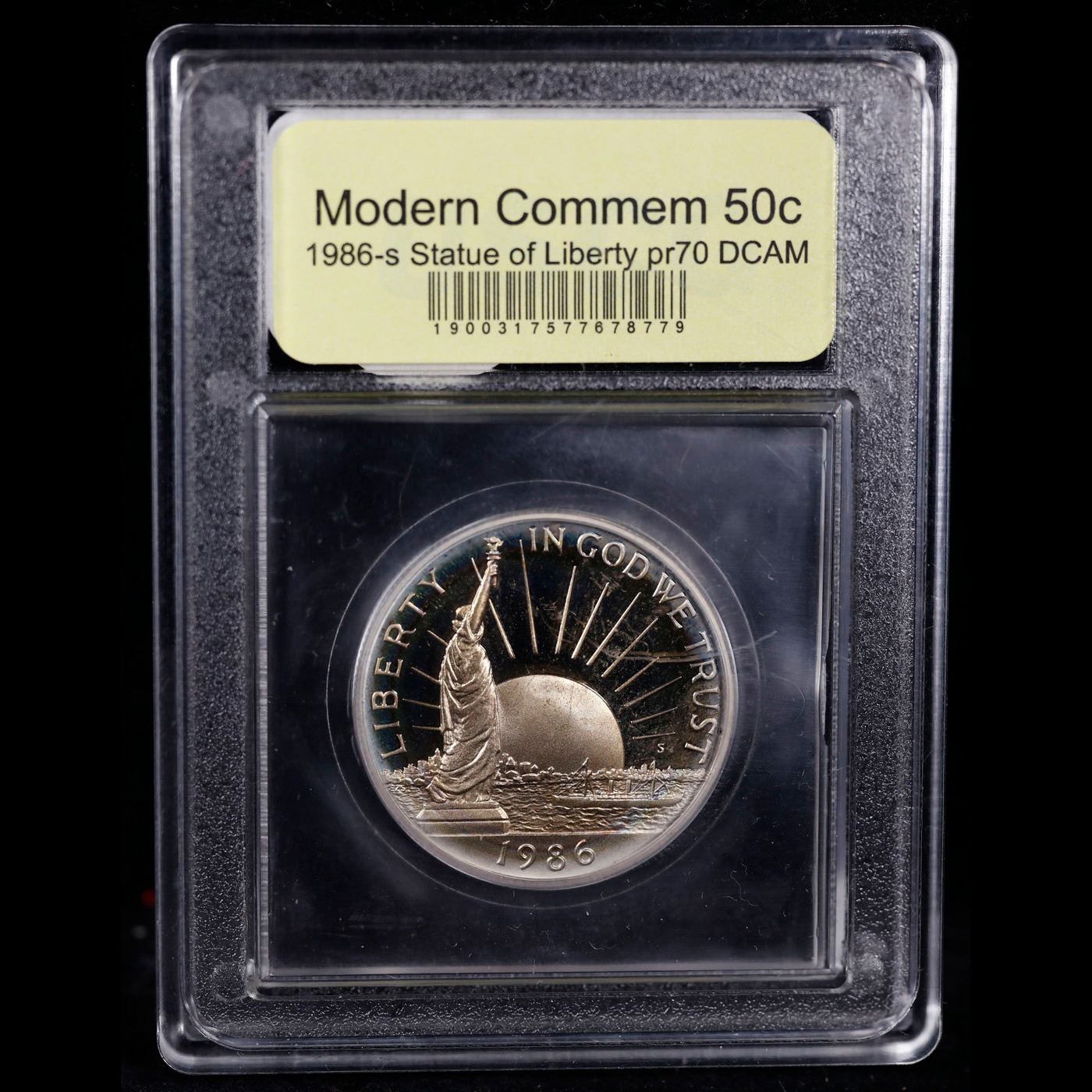 1986-S Liberty Modern Commem Half Dollar 50c Graded GEM++ Proof Deep Cameo By USCG. This Statue of Liberty commemorative pays homage to Ellis Island. This example is Graded PR70 DCAM by USCG.