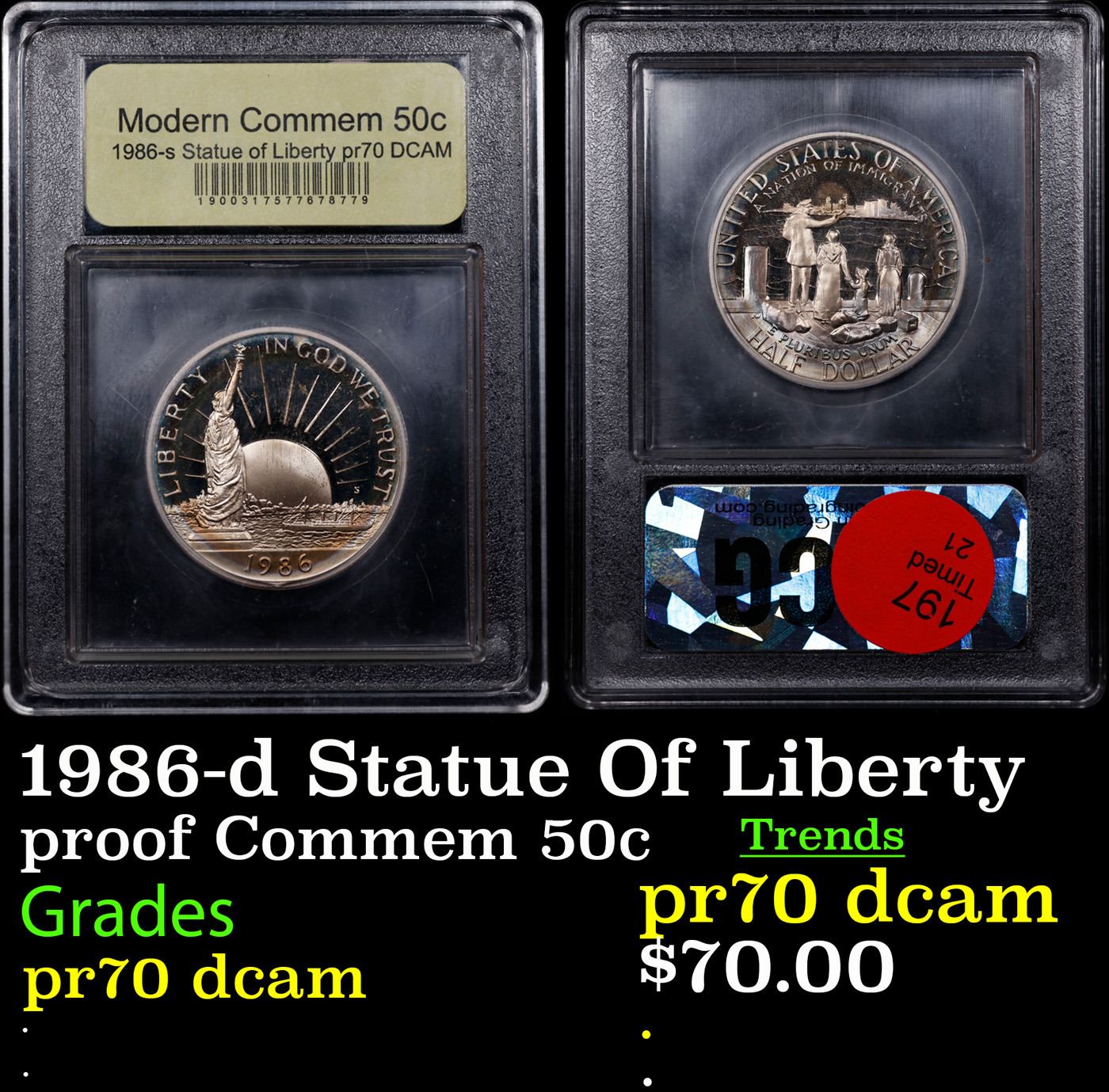 1986-d Statue Of Liberty Modern Commem Half Dollar 50c Graded GEM++ Proof Deep Cameo By USCG.