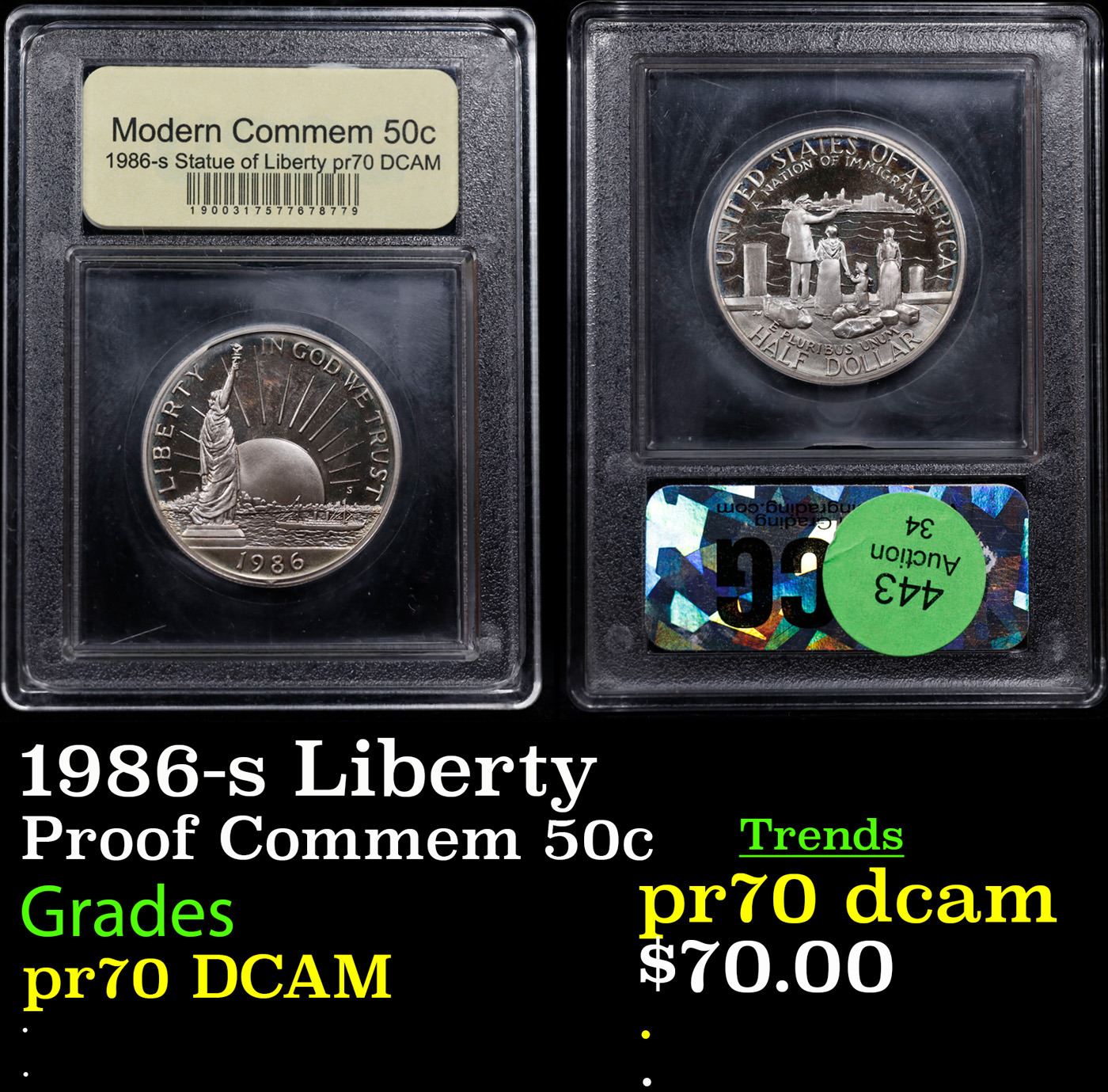 1986-s Liberty Modern Commem Half Dollar 50c Graded GEM++ Proof Deep Cameo By USCG.