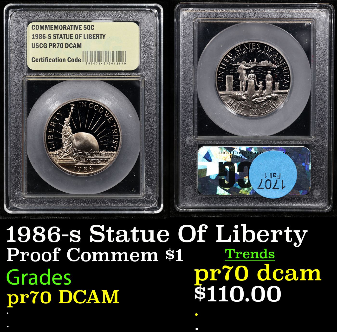 Proof 1986-s Statue Of Liberty Modern Commem Dollar $1 Graded GEM++ Proof Deep Cameo By USCG