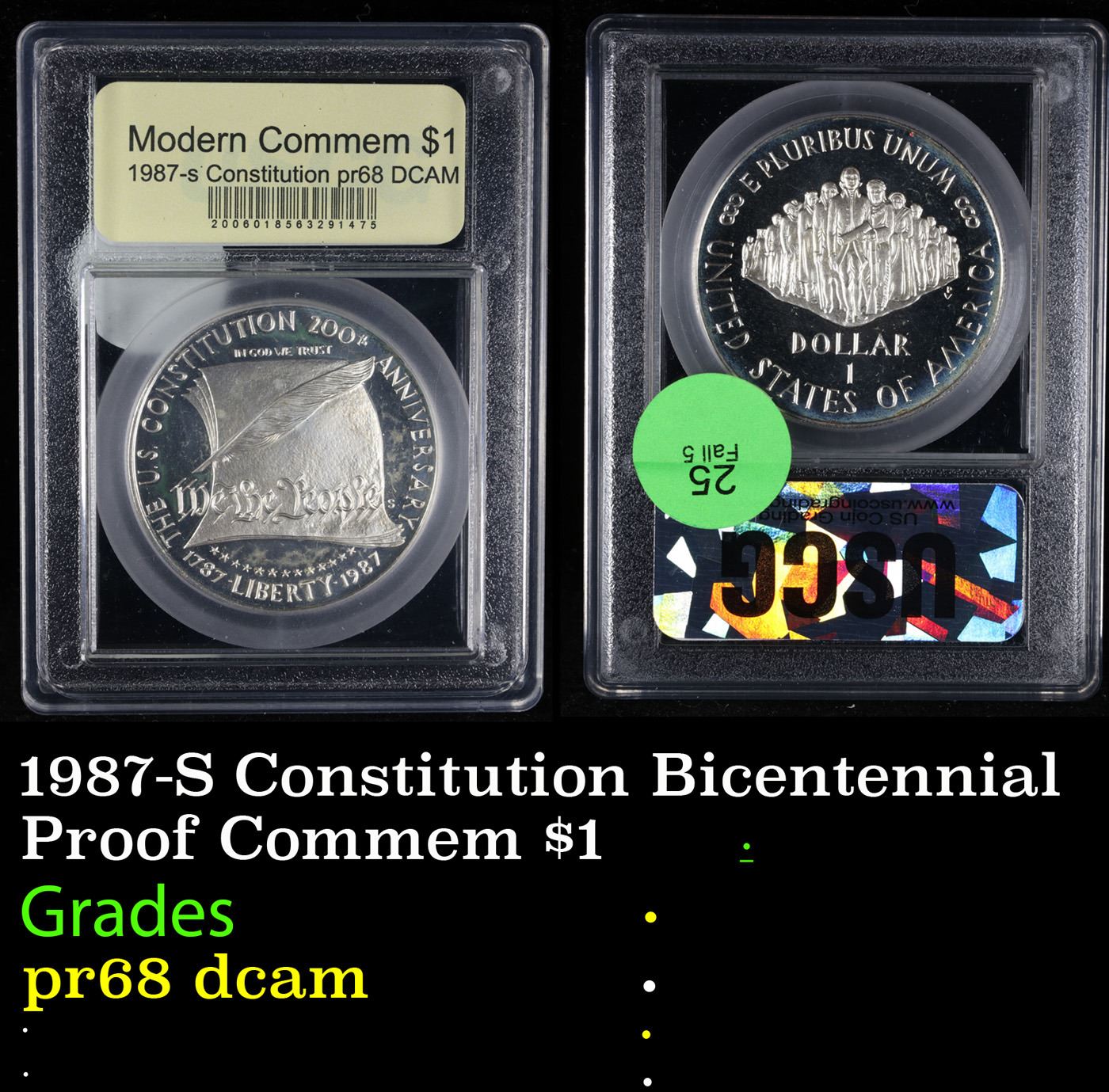 1987-S Constitution Bicentennial Modern Commem Dollar $1 Graded GEM++ Proof Deep Cameo By USCG.