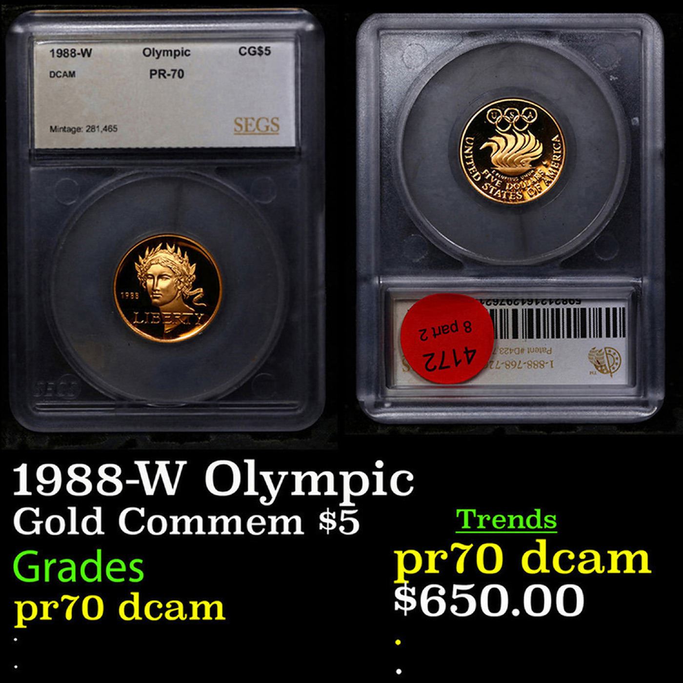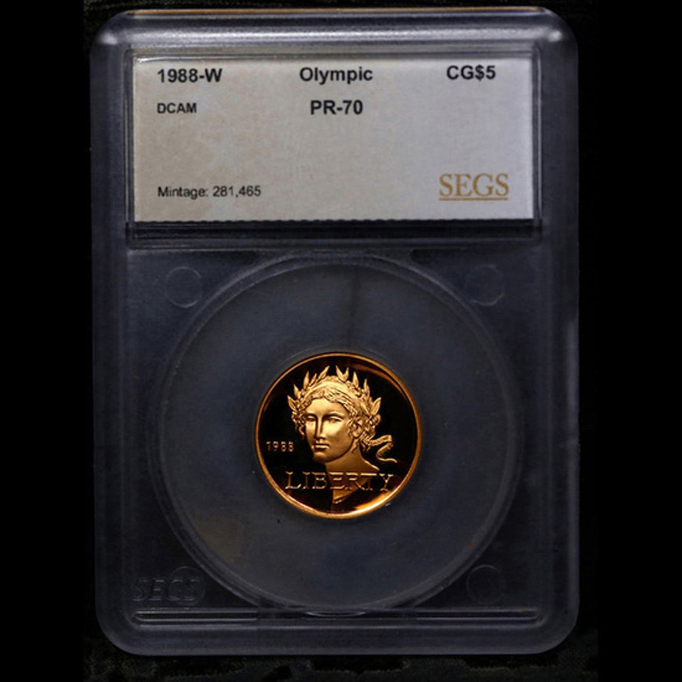 1988-W Olympic Gold Commemorative $5 Graded pr70 dcam By SEGS. A Key Date's Pick
