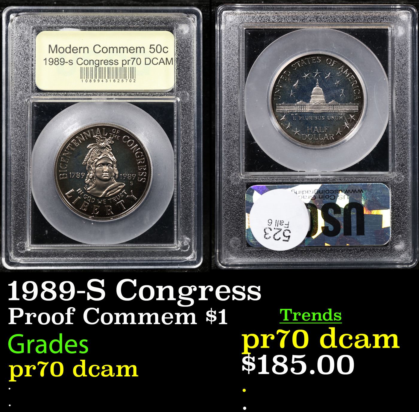 1989-S Congress Modern Commem Dollar $1 Graded pr70 dcam By USCG.