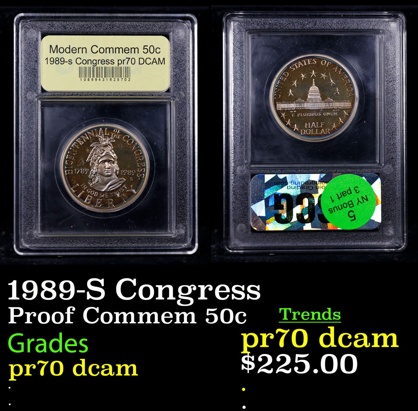 1989-S Congress Modern Commem Half Dollar 50c Graded GEM++ Proof Deep Cameo BY USCG.