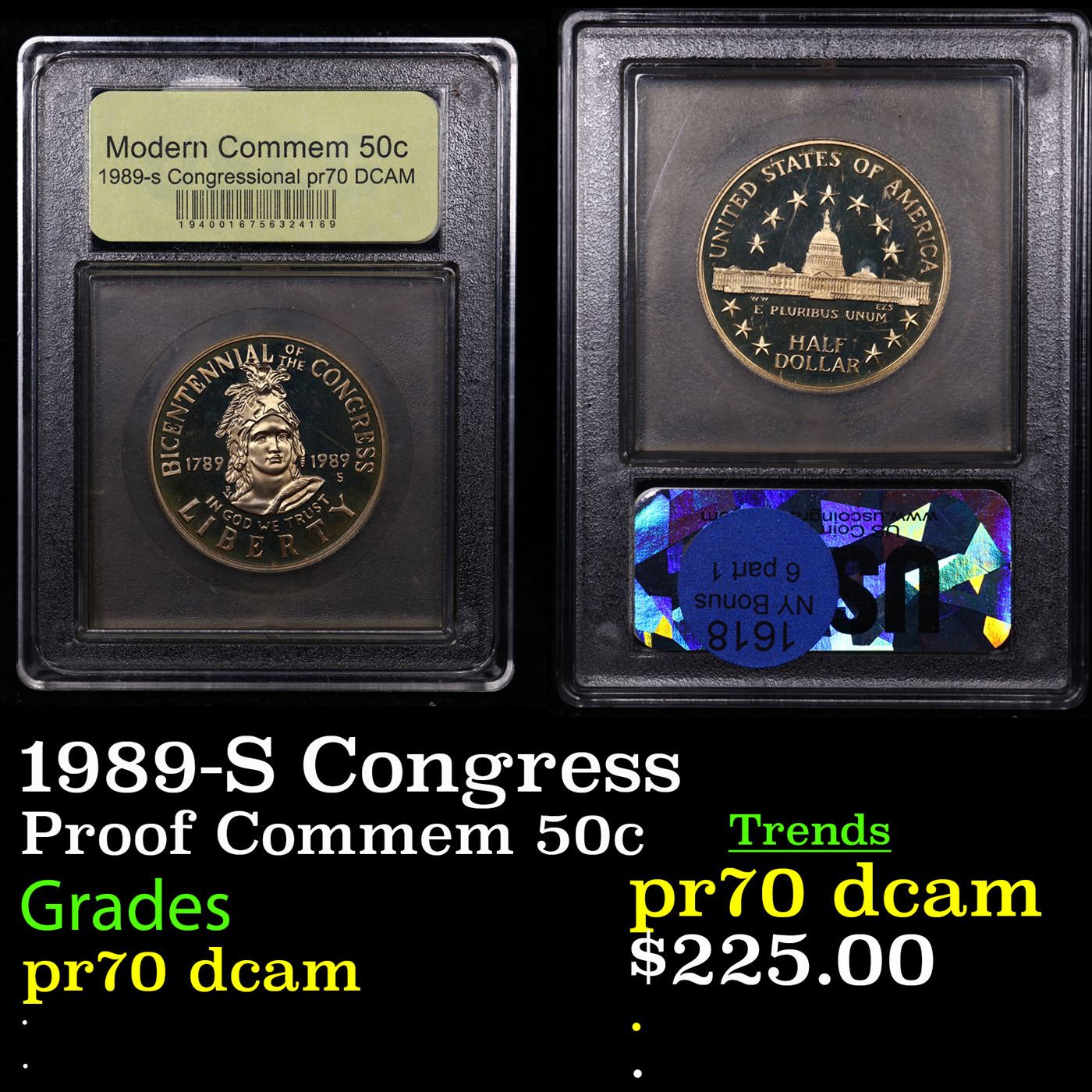 Proof 1989-S Congress Modern Commem Half Dollar 50c Graded GEM++ Proof Deep Cameo By USCG