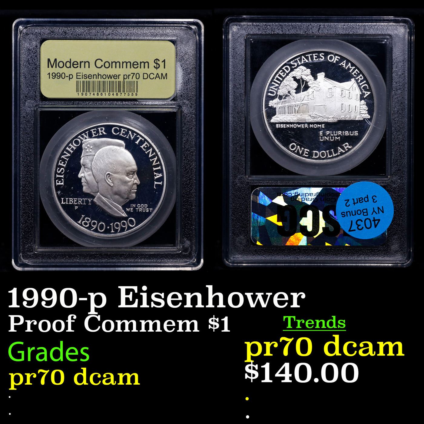 1990-p Eisenhower Modern Commem Dollar $1 Graded GEM++ Proof Deep Cameo BY USCG.