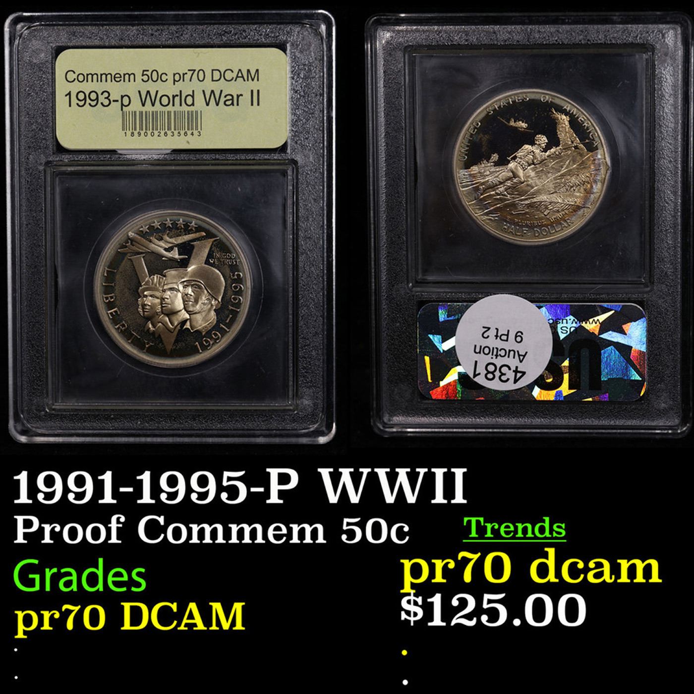 Proof 1991-1995-P WWII Modern Commem Half Dollar 50c Graded GEM++ Proof Deep Cameo By USCG
