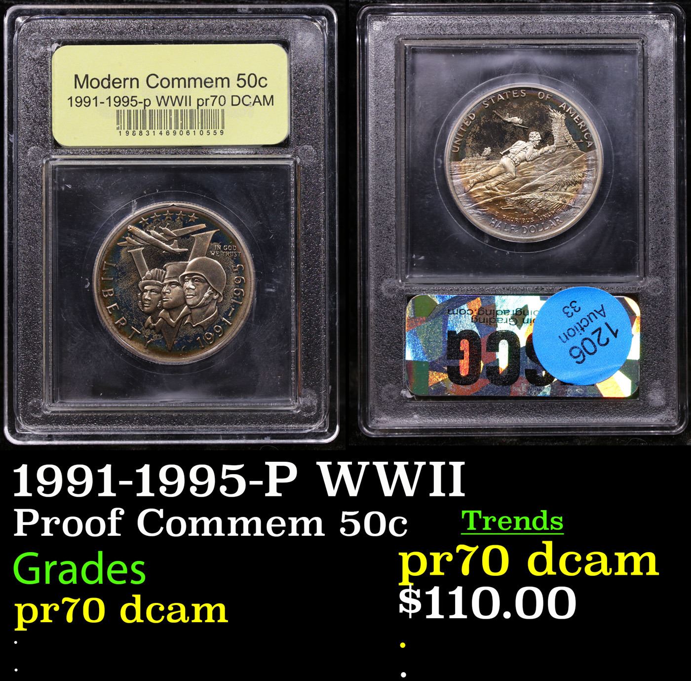 1991-1995-P WWII Modern Commem Half Dollar 50c Graded GEM++ Proof Deep Cameo By USCG. 0
