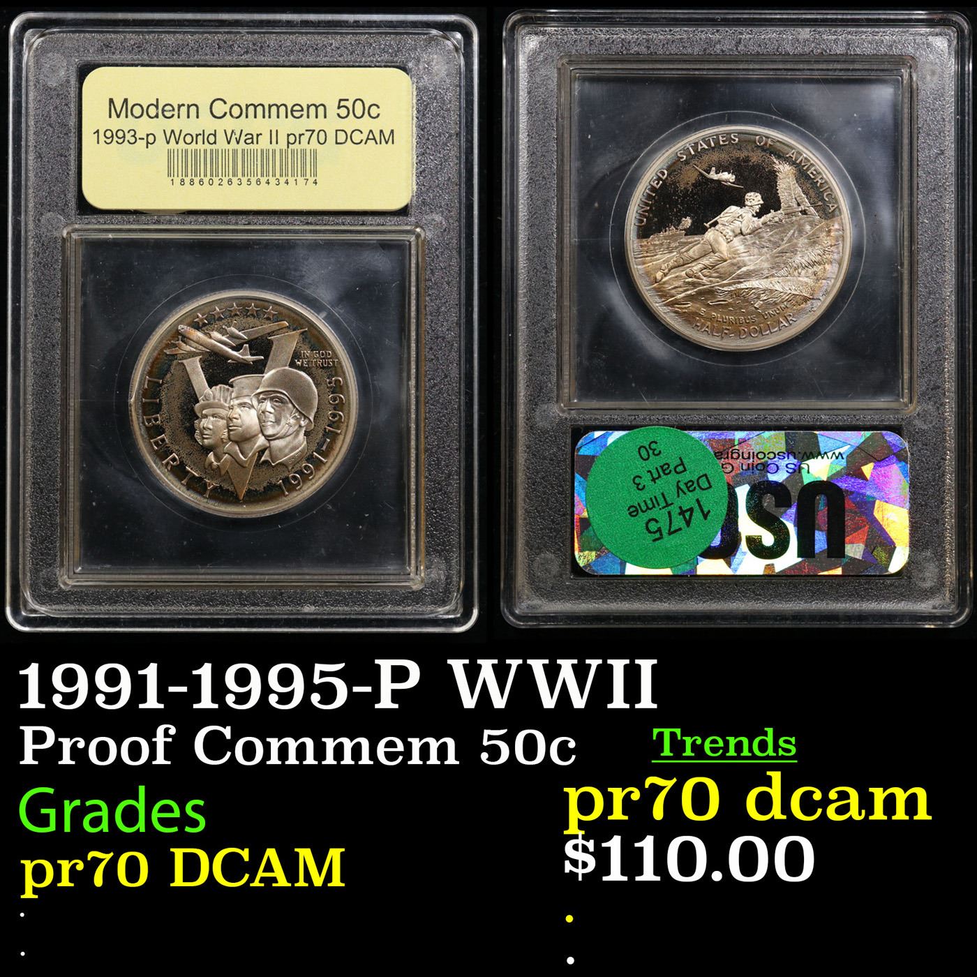 1991-1995-P WWII Modern Commem Half Dollar 50c Graded GEM++ Proof Deep Cameo By USCG.