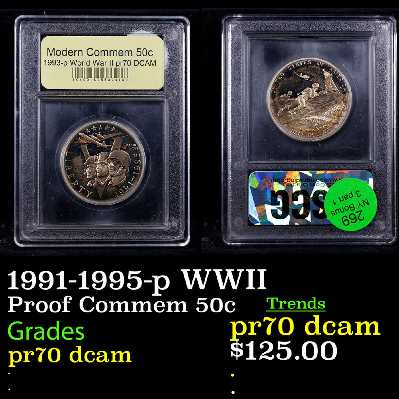 1991-1995-p WWII Modern Commem Half Dollar 50c Graded GEM++ Proof Deep Cameo BY USCG.