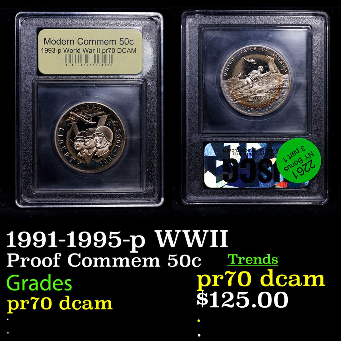 Proof 1991-1995-p WWII Modern Commem Half Dollar 50c Graded GEM++ Proof Deep Cameo BY USCG
