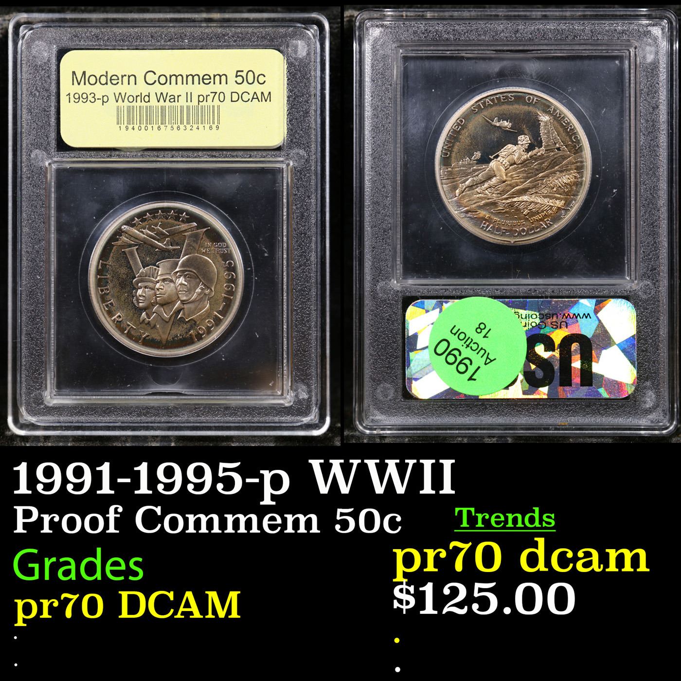 1991-1995-p WWII Modern Commem Half Dollar 50c Graded GEM++ Proof Deep Cameo By USCG.