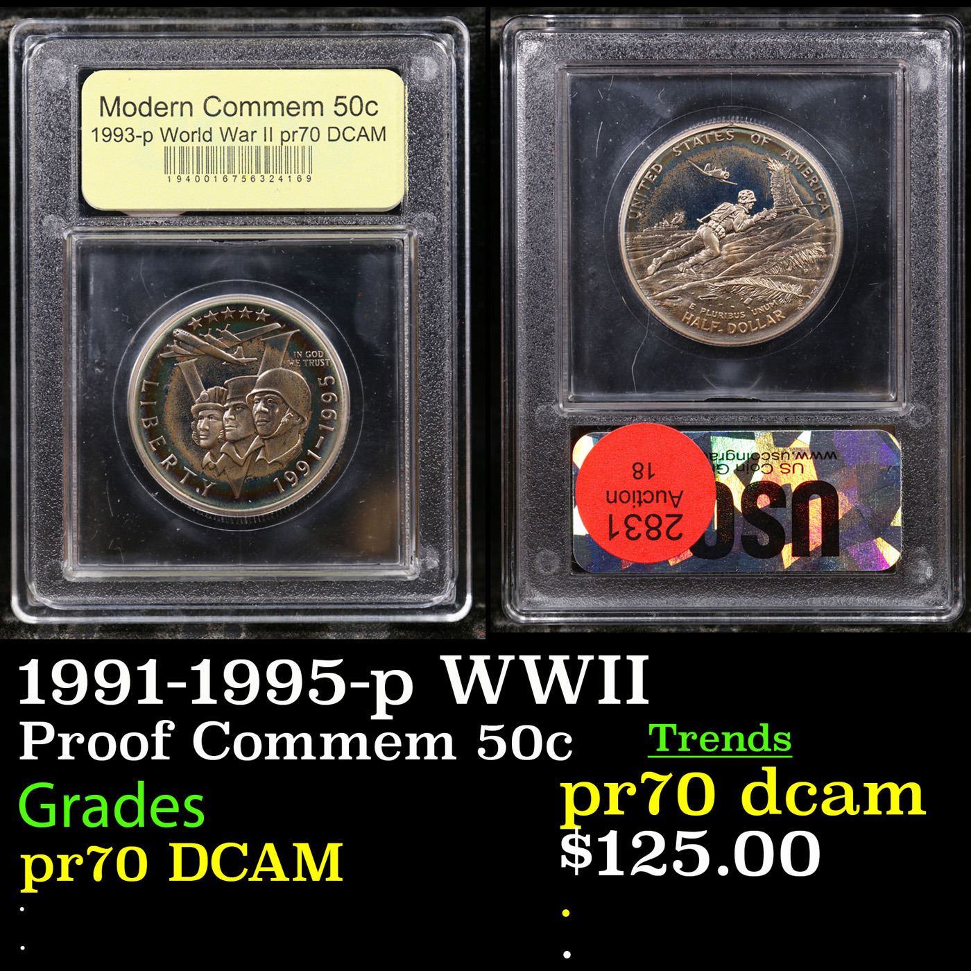 1991-1995-p WWII Modern Commem Half Dollar 50c Graded GEM++ Proof Deep Cameo By USCG.