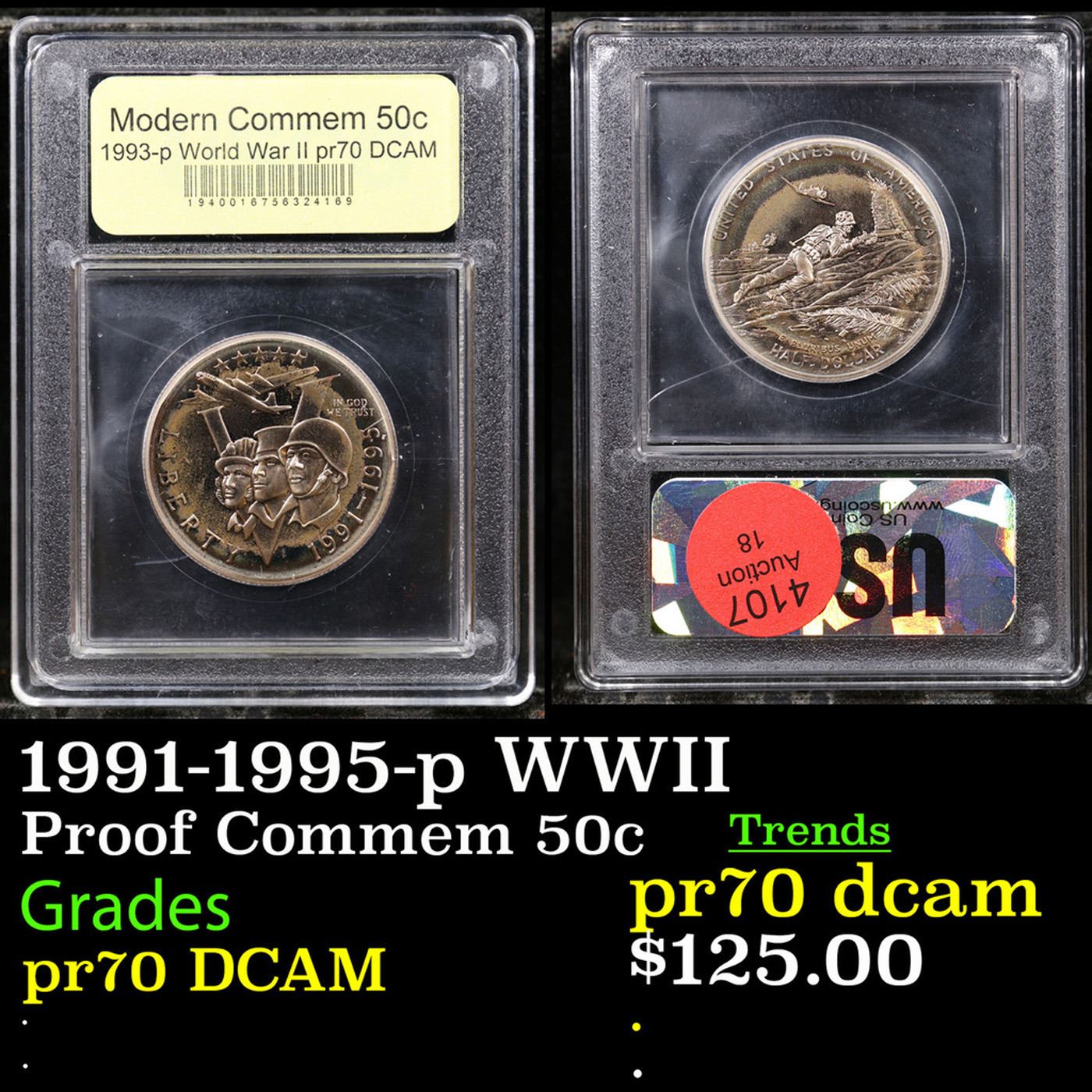 1991-1995-p WWII Modern Commem Half Dollar 50c Graded GEM++ Proof Deep Cameo By USCG.