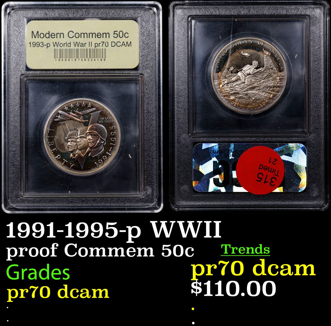 1991-1995-p WWII Modern Commem Half Dollar 50c Graded GEM++ Proof Deep Cameo By USCG.