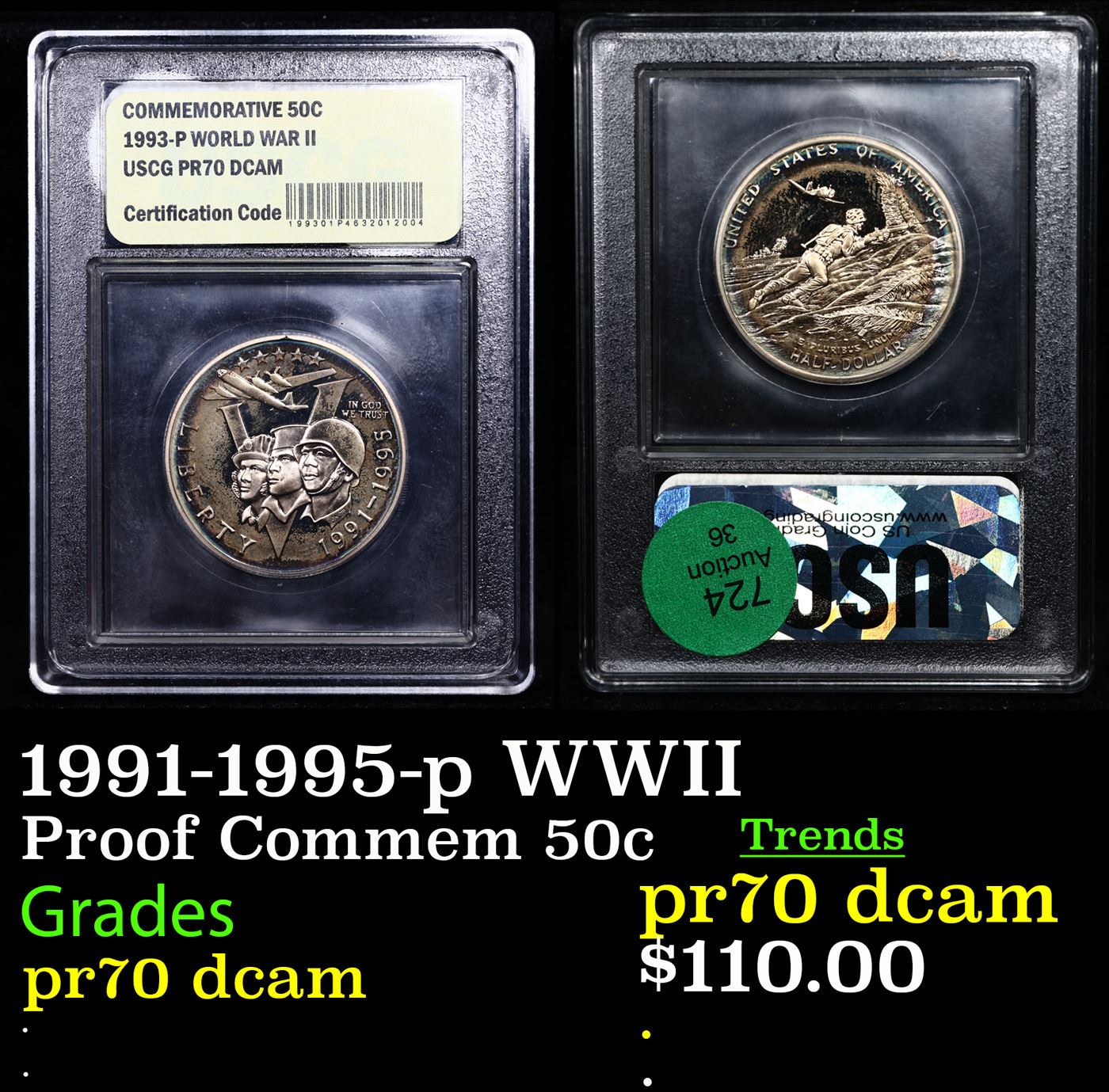 Proof 1991-1995-p WWII Modern Commem Half Dollar 50c Graded GEM++ Proof Deep Cameo By USCG