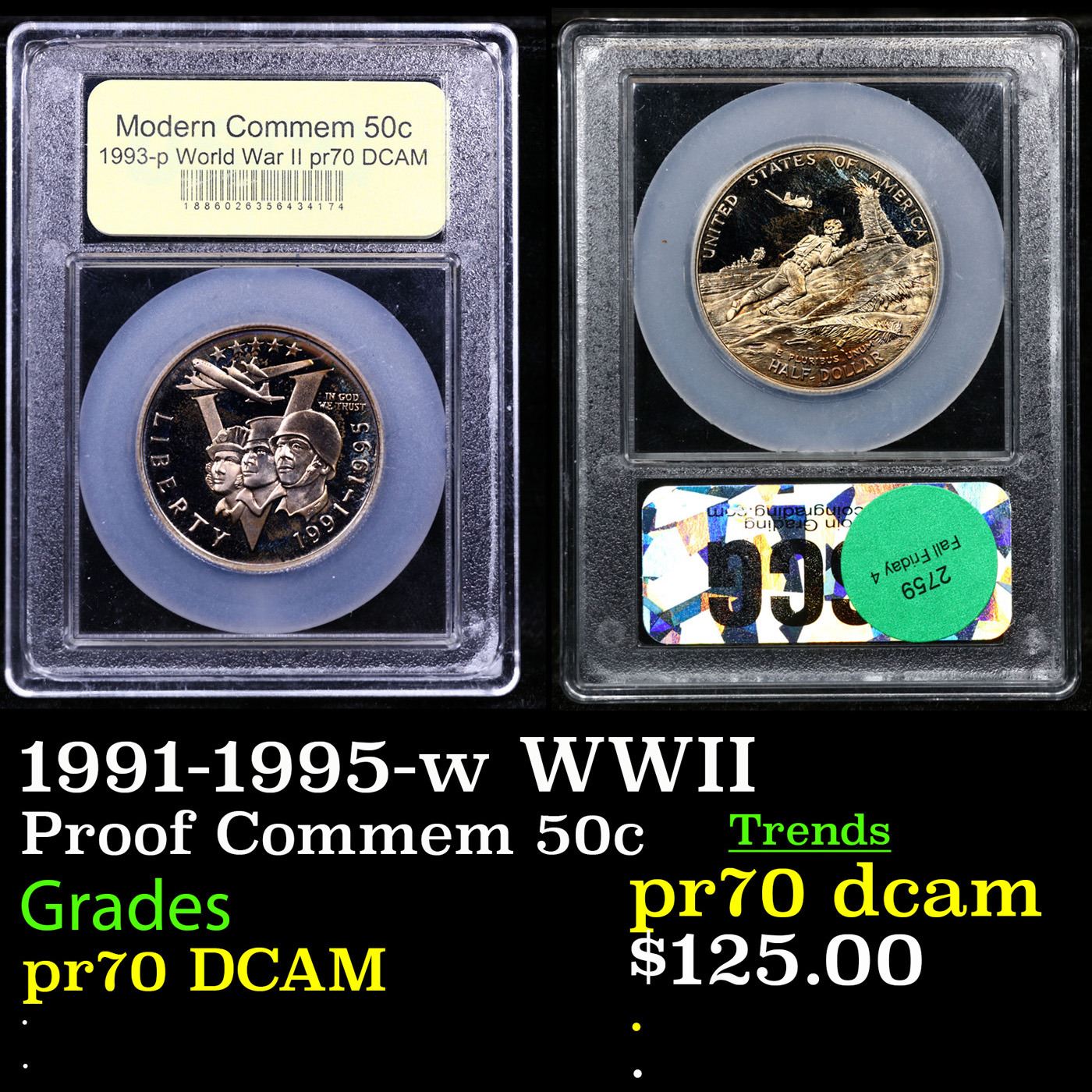 Proof 1991-1995-w WWII Modern Commem Half Dollar 50c Graded GEM++ Proof Deep Cameo BY USCG