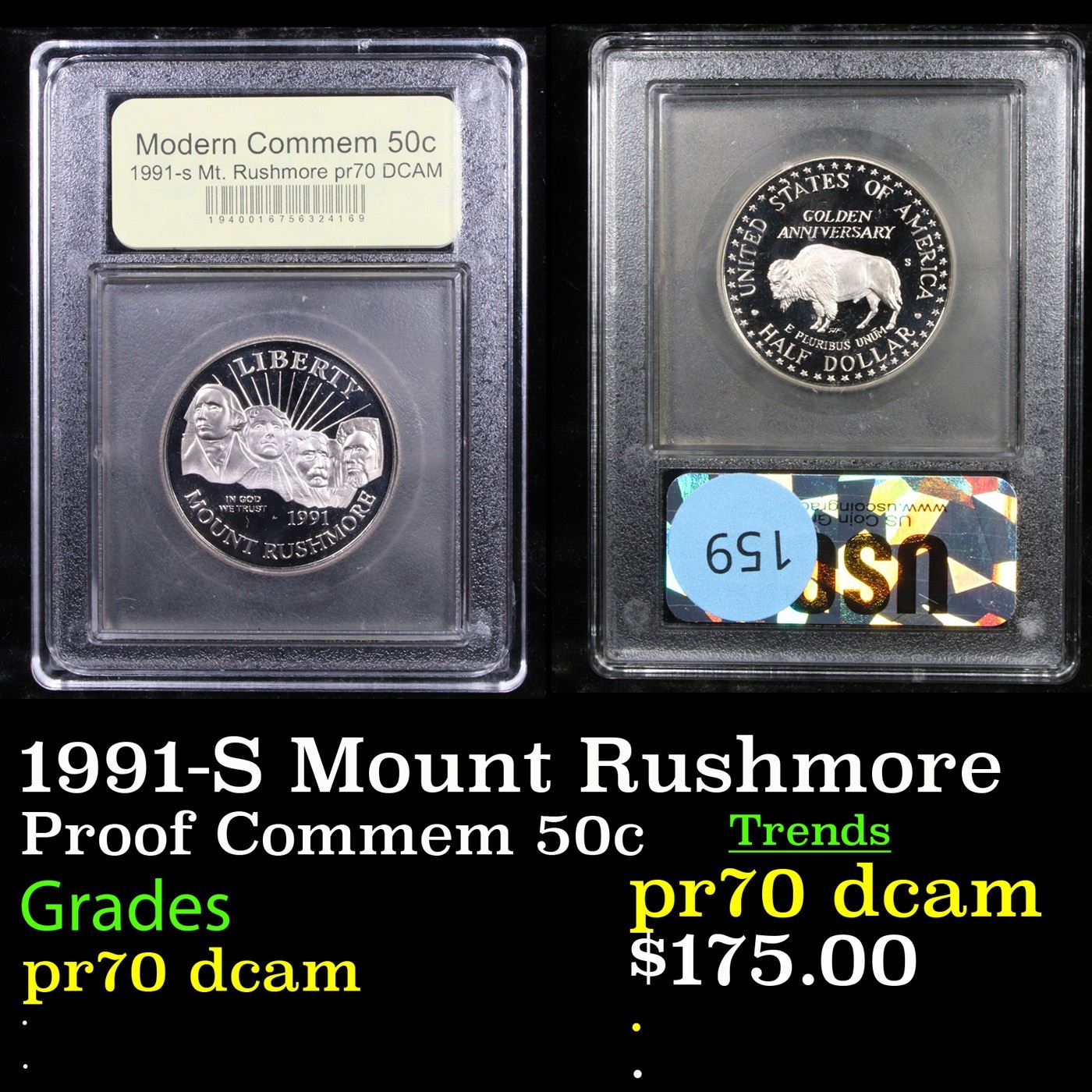 1991-S Mount Rushmore Modern Commem Half Dollar 50c Graded GEM++ Proof Deep Cameo By USCG. This commemorative was Issued to celebrate the Golden Anniversary of The completion of Mount Rushmore. This coin is Graded perfect PR70 Deep Cameo by USCG. Estimated Value $150.