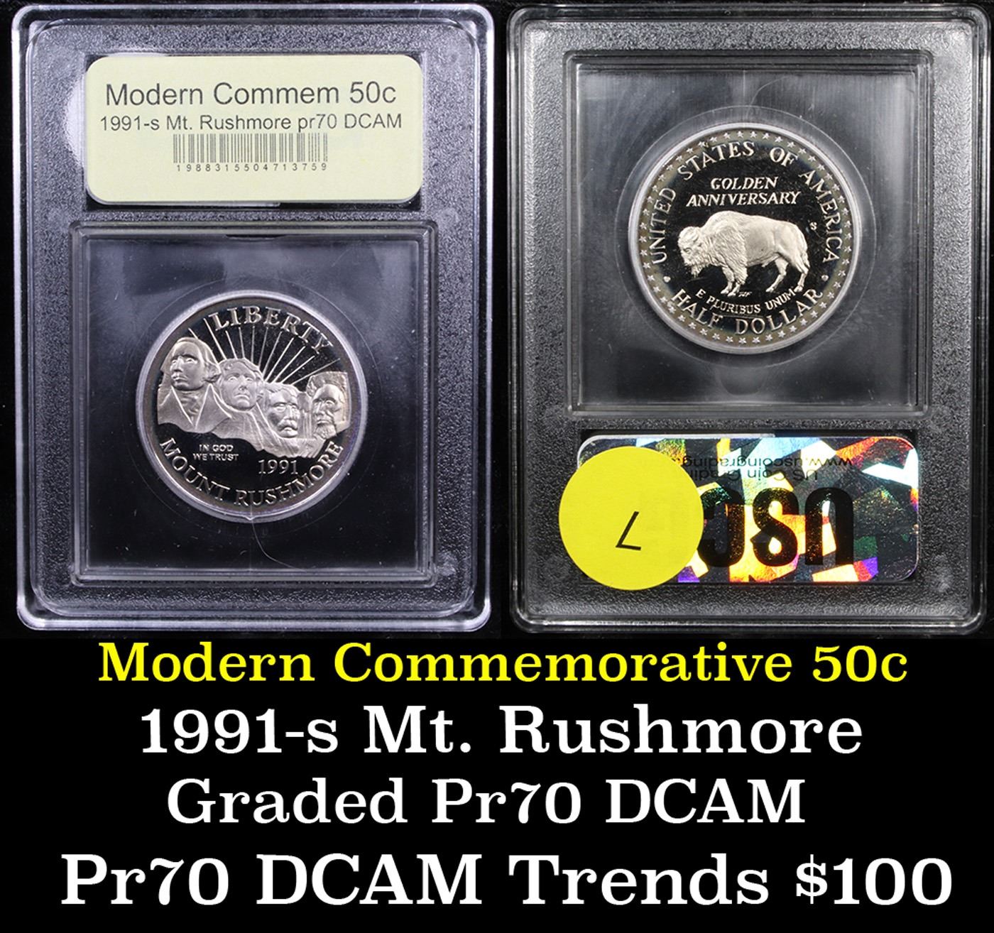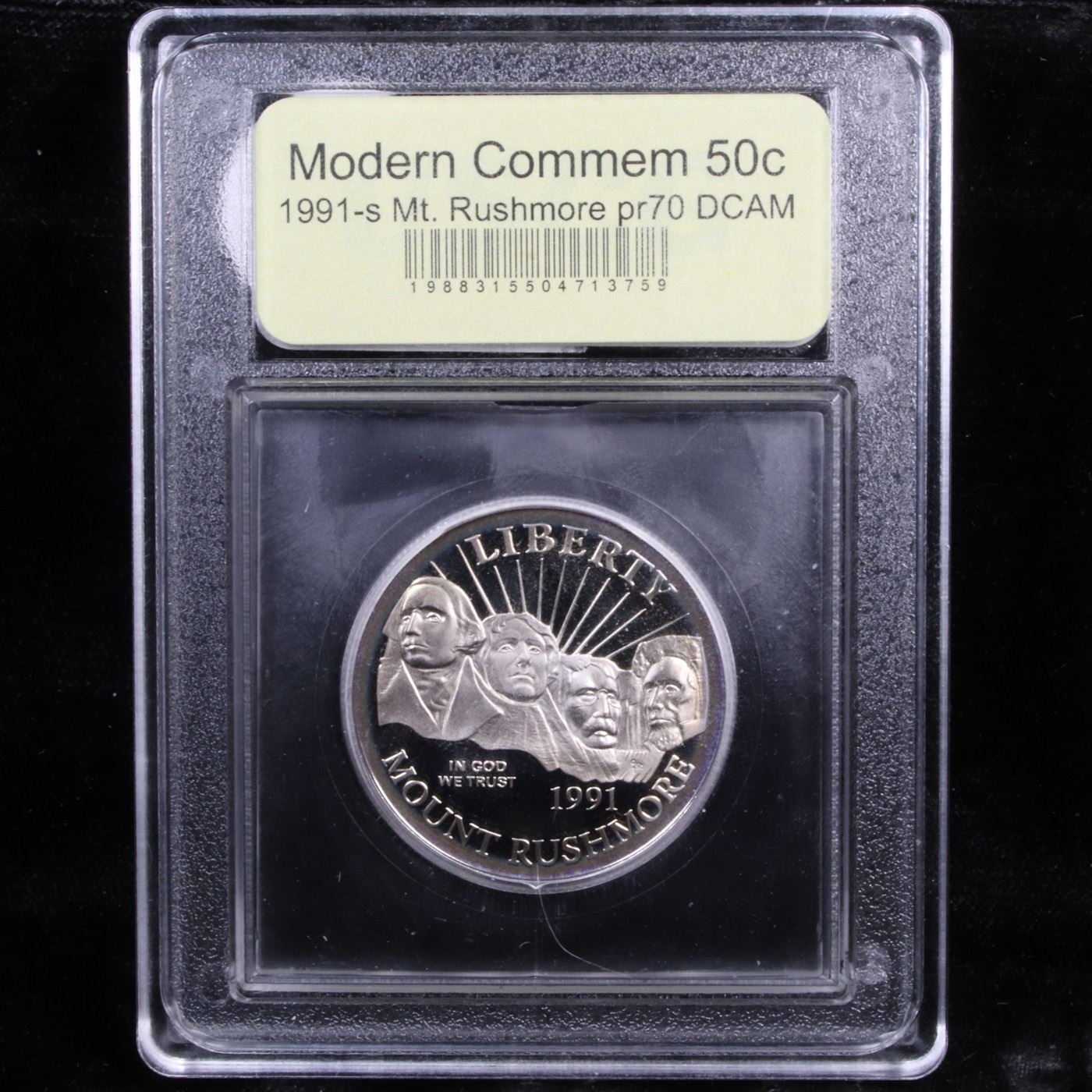 1991-S Mount Rushmore Modern Commem Half Dollar 50c Graded GEM++ Proof Deep Cameo By USCG. Issued to celebrate the Golden Anniversary of The completion of Mount Rushmore. This coin is Graded perfect PR70 Deep Cameo by USCG.
