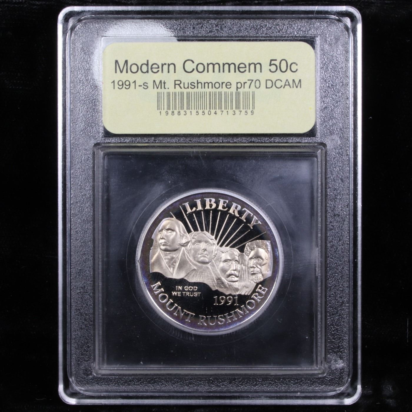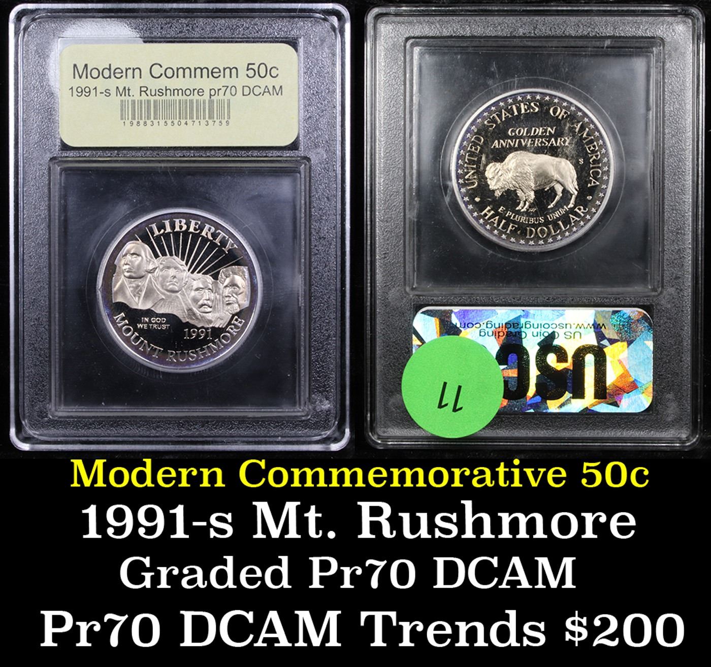 1991-S Mount Rushmore Modern Commem Half Dollar 50c Graded GEM++ Proof Deep Cameo By USCG. Issued to celebrate the Golden Anniversary of The completion of Mount Rushmore. This coin is Graded perfect PR70 Deep Cameo by USCG.