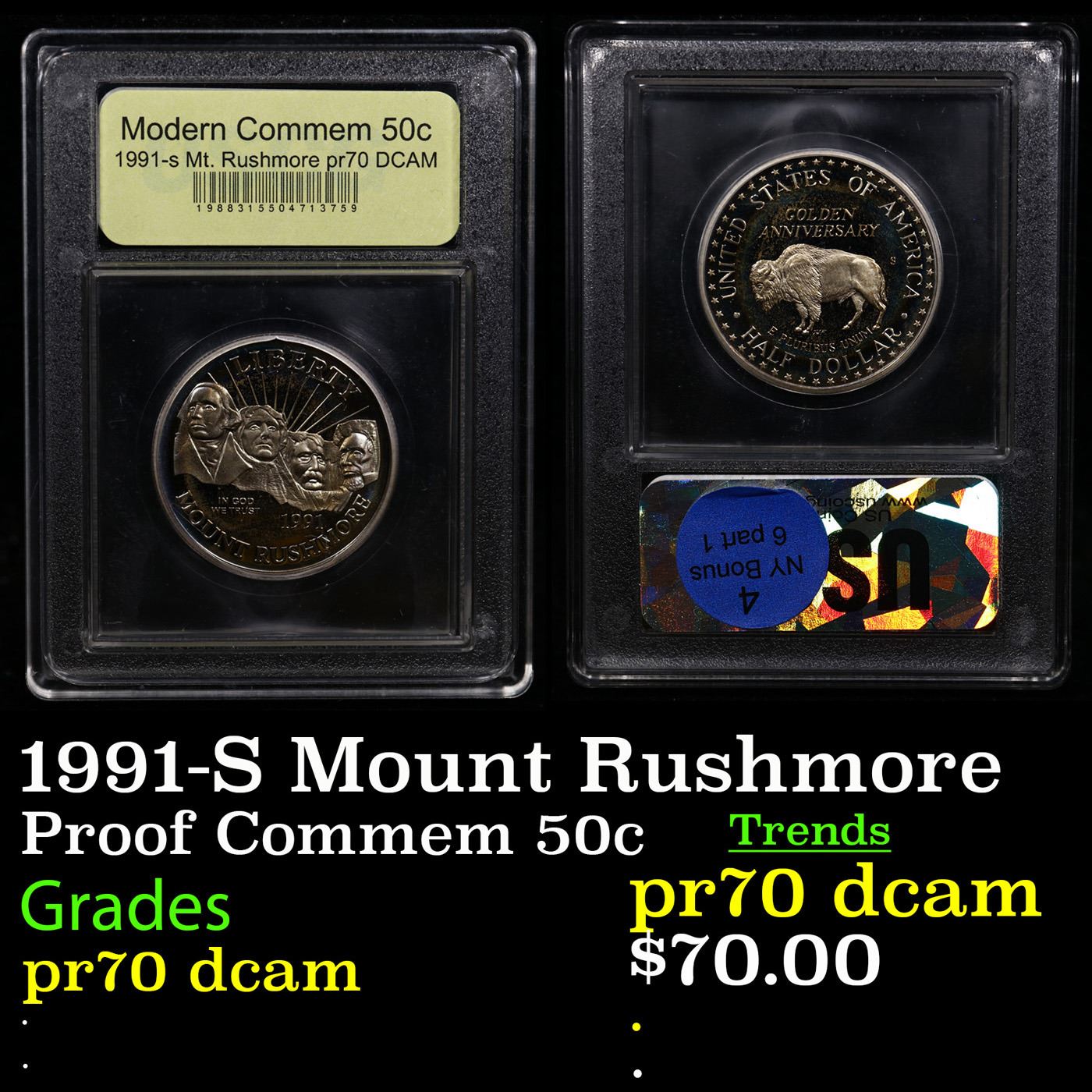1991-S Mount Rushmore Modern Commem Half Dollar 50c Graded GEM++ Proof Deep Cameo By USCG.