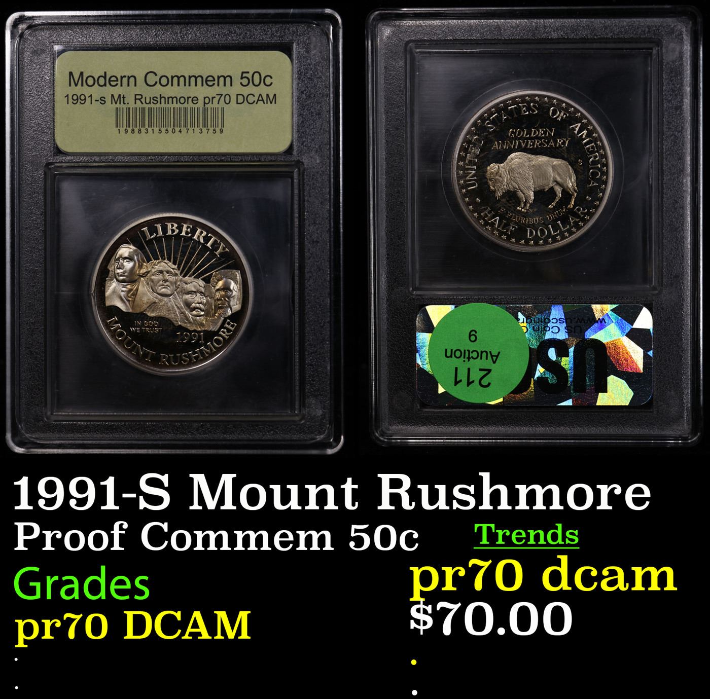 Proof 1991-S Mount Rushmore Modern Commem Half Dollar 50c Graded GEM++ Proof Deep Cameo By USCG