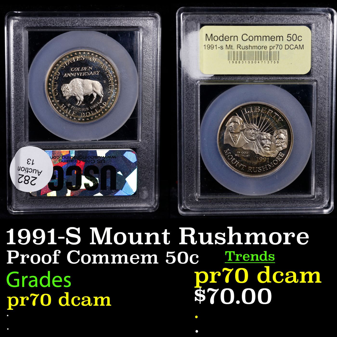 1991-S Mount Rushmore Modern Commem Half Dollar 50c Graded GEM++ Proof Deep Cameo By USCG. Issued to celebrate the Golden Anniversary of Mount Rushmore. A perfect Proof Example. Graded PR70 DCAM by USCG.