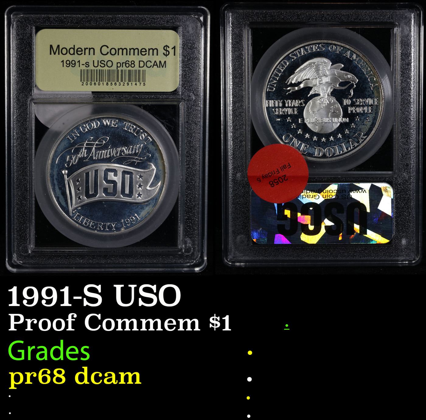 1991-S USO Modern Commem Dollar $1 Graded GEM++ Proof Deep Cameo By USCG.