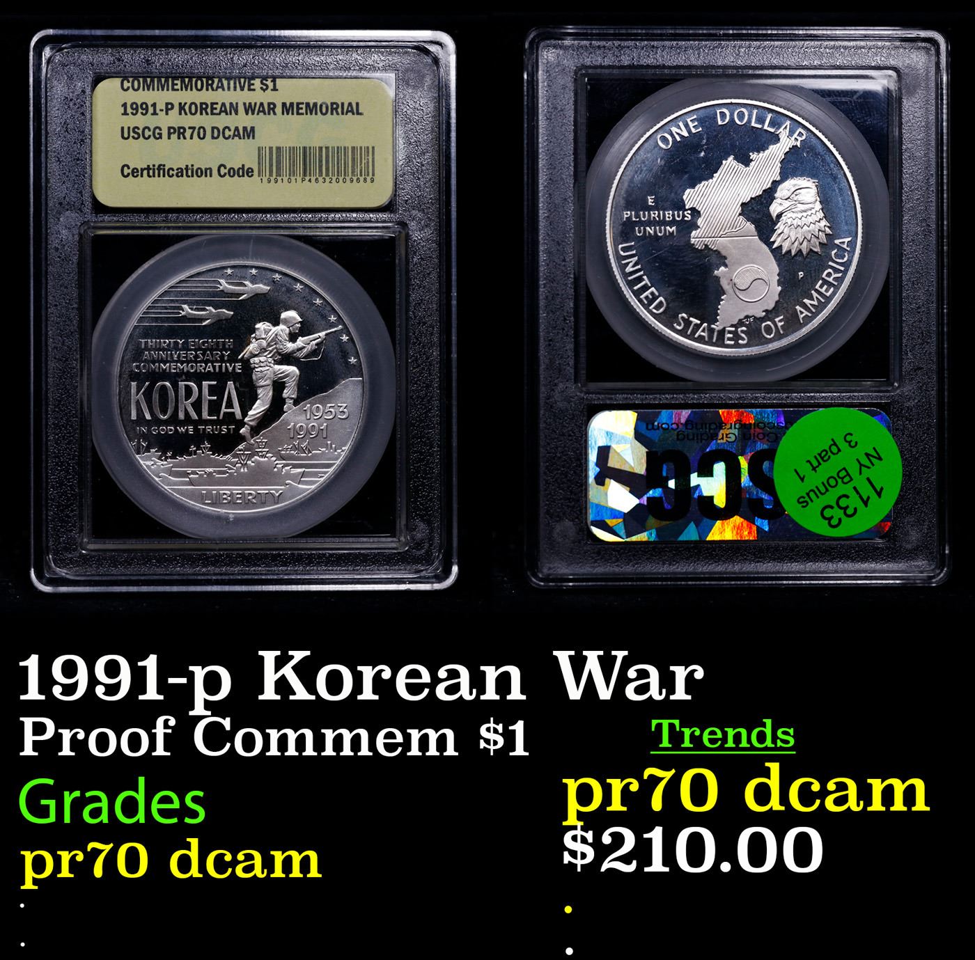 1991-p Korean War Modern Commem Dollar $1 Graded GEM++ Proof Deep Cameo BY USCG.