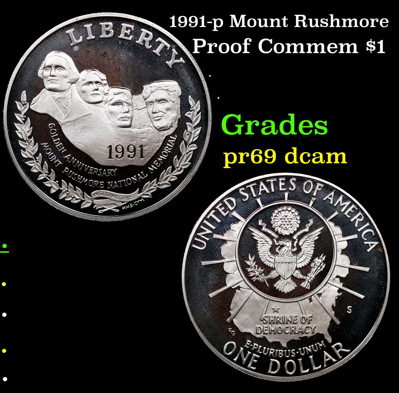 1991-p Mount Rushmore Modern Commem Dollar $1 Grades GEM++ Proof Deep Cameo.