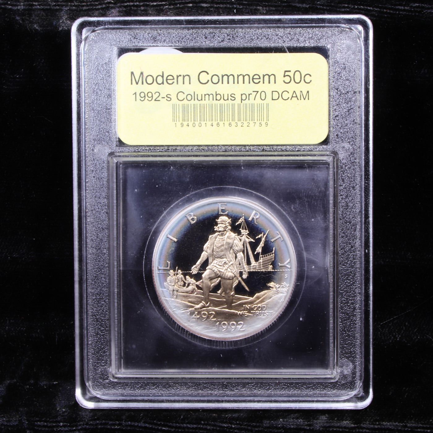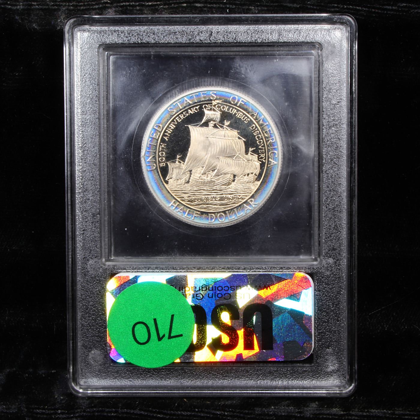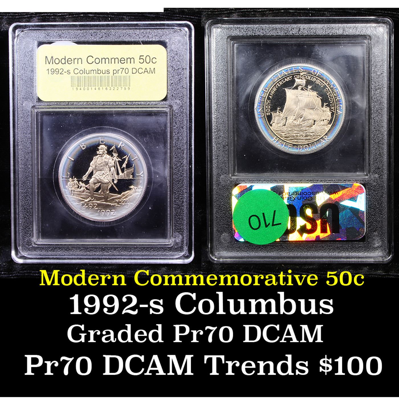 1992-S Columbus Modern Commem Half Dollar 50c Graded GEM++ Proof Deep Cameo By USCG. This very special Commemorative was issued to mark the 500th anniversary or quincentenary of the discovery of the Americas by Christopher Columbus. One Hundred years earlier in 1892 America issued a similar commemorative Half Dollar, our first half Dollar Commemorative, which honored the 400th Anniversary. A very significant Issue. This proof half dollar is graded PR70 by USCG.